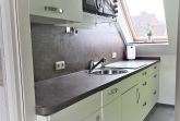 Komplett eingerichtete Küche mit Spülmaschine, 4-Platten-Cerankochfeld, Kühlschrank mit kleinem Gefrierfach. Des Weiteren stehen eine Kaffeemaschine, ein Toaster, ein Wasserkocher, eine Mikrowelle und ein kleiner Backofen zur Verfügung