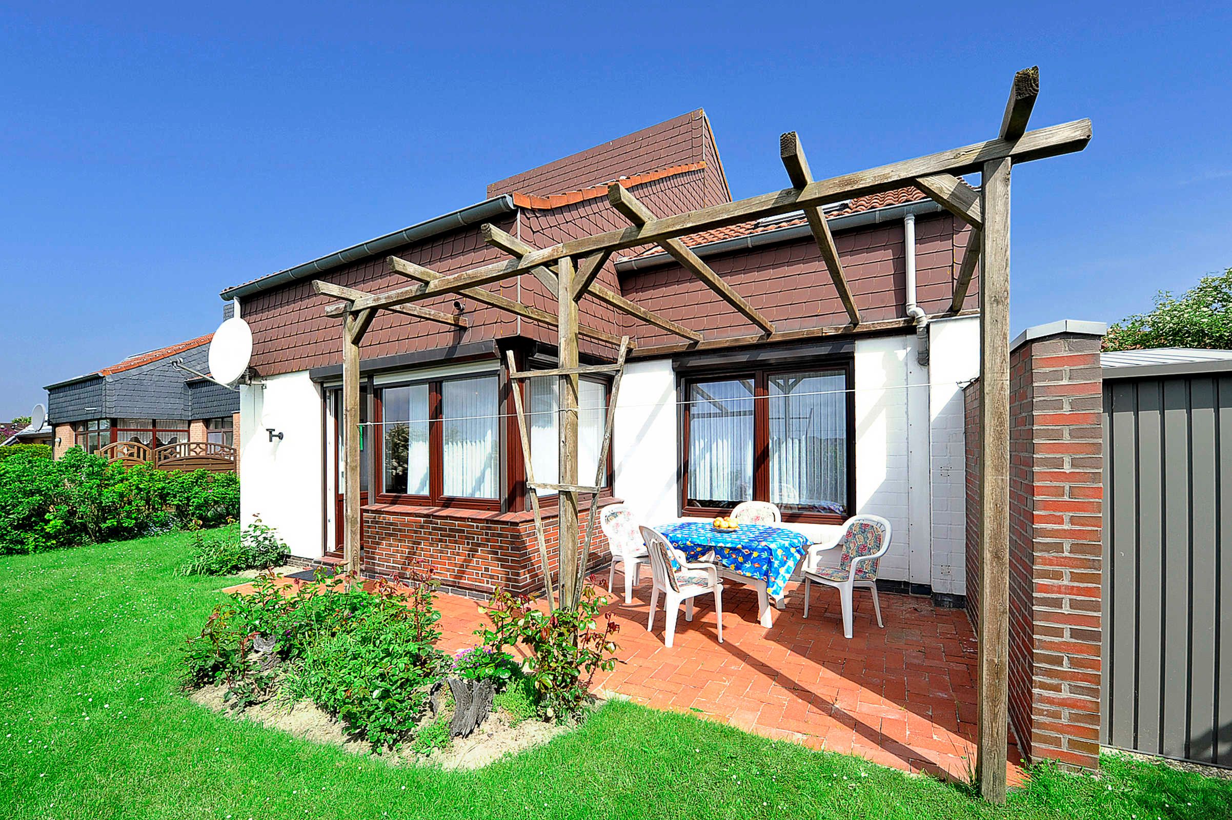 Größe ca. 70 Quadratmeter, Wohnzimmer, Küche, Schlafzimmer, Kinderzimmer, Badezimmer mit Dusche, Waschtisch und WC, Erdgeschoss, Terrasse (Richtung Süden), optimal für 2 bis 4 Personen.
