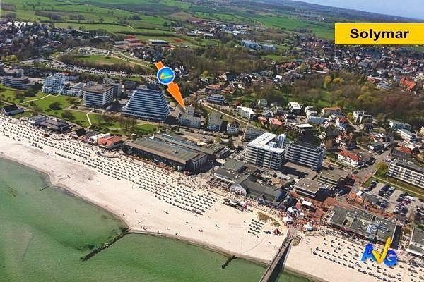 Das Wohn- und Geschäftshaus Solymar liegt in unmittelbarer Strandnähe (ca. 100 m). Die Seebrücke mit der Tauchgondel, das Zentrum, das Meerwasserbad 'Grömitzer Welle' und den Kurpark erreichen Sie von hier in nur wenigen Minuten. Im Erdgeschoss des Gebäudes befindet sich ein italienisches Restaurant sowie kleinere Geschäfte.