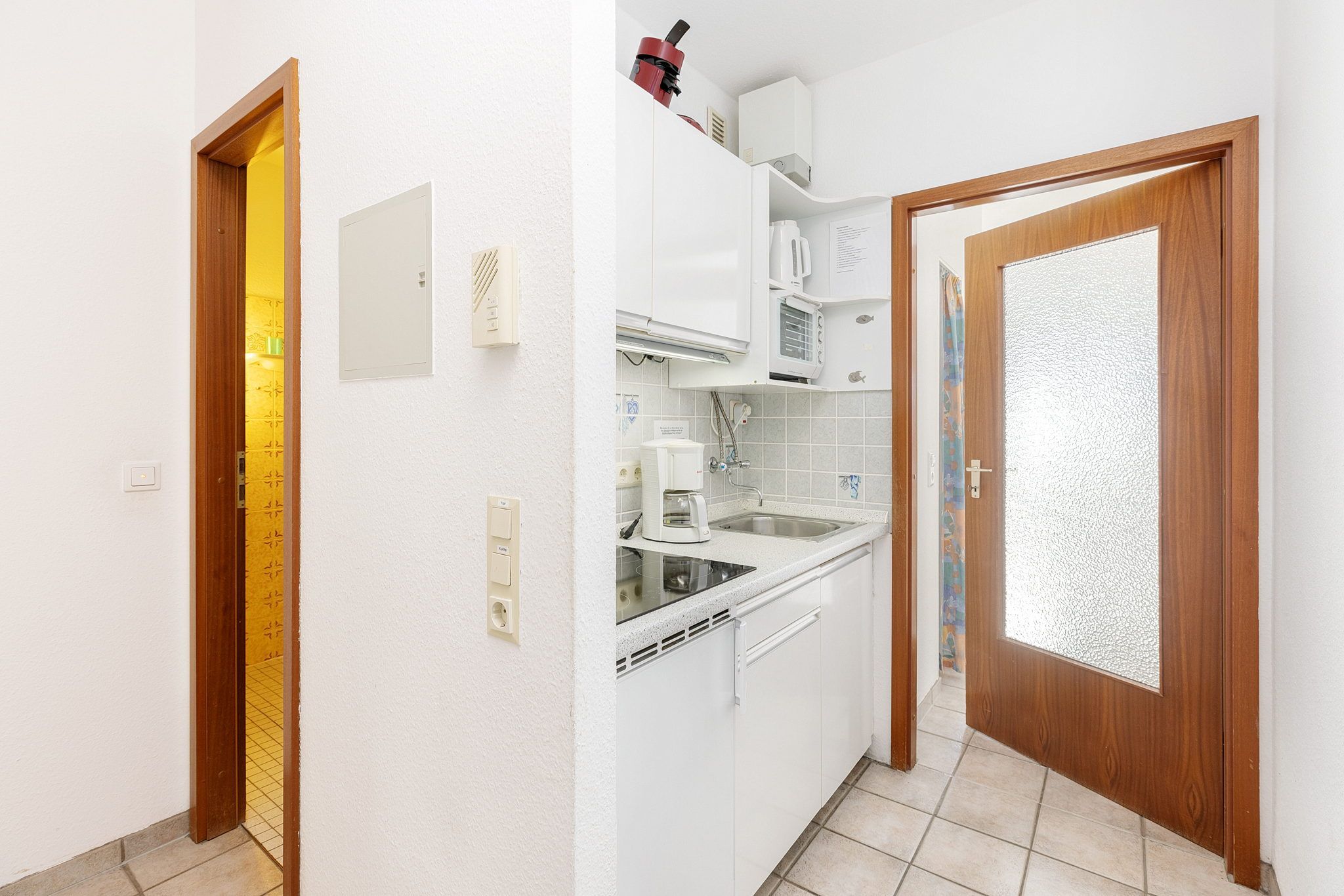 Die Wohnung befindet sich im 3. OG im Grömitz-Center 2 (Fahrstuhl vorhanden, es führen 4 Stufen zur Wohnung)