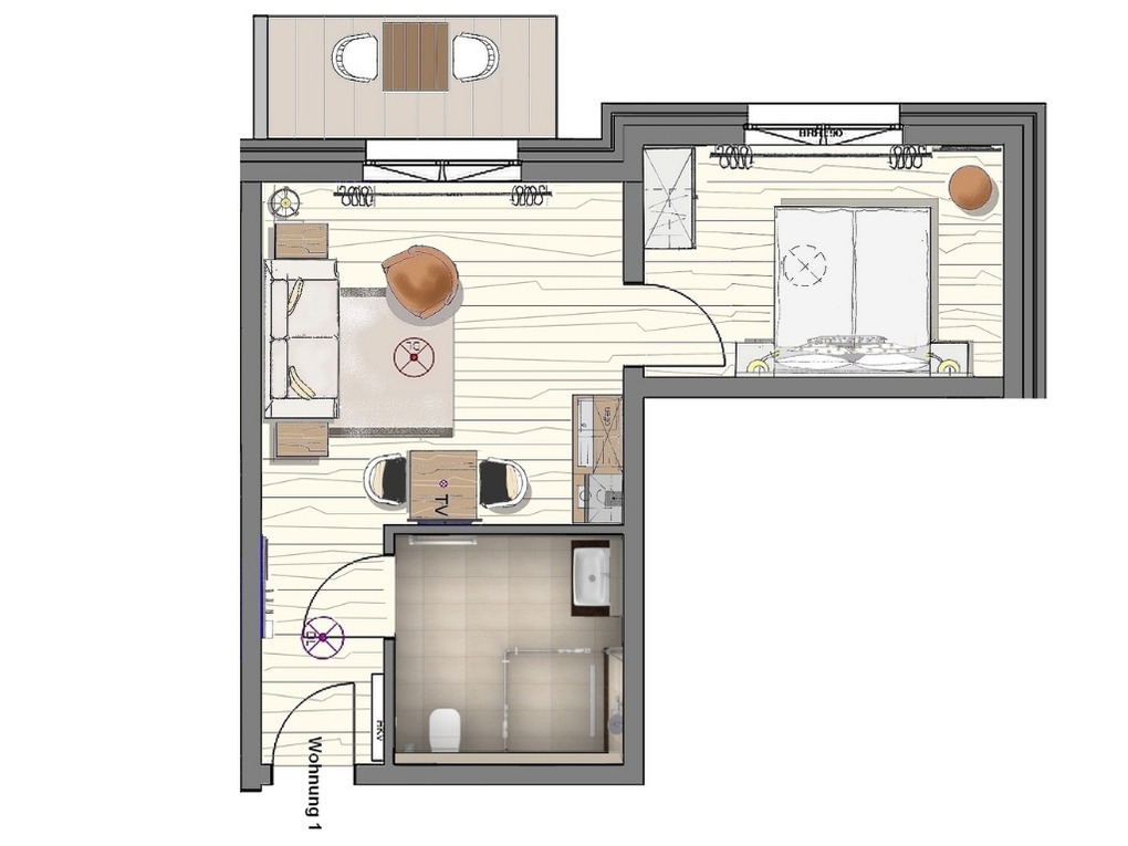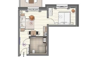 Die großzügigen 2-Raum-Appartements haben eine Größe von 39 m² und verfügen über einen Balkon oder Terrasse, einen separaten Schlafraum und einem Wohnbereich (teilweise aufbettbar) mit integrierter Küchenzeile mit Essbereich für 2 - 4 Personen.