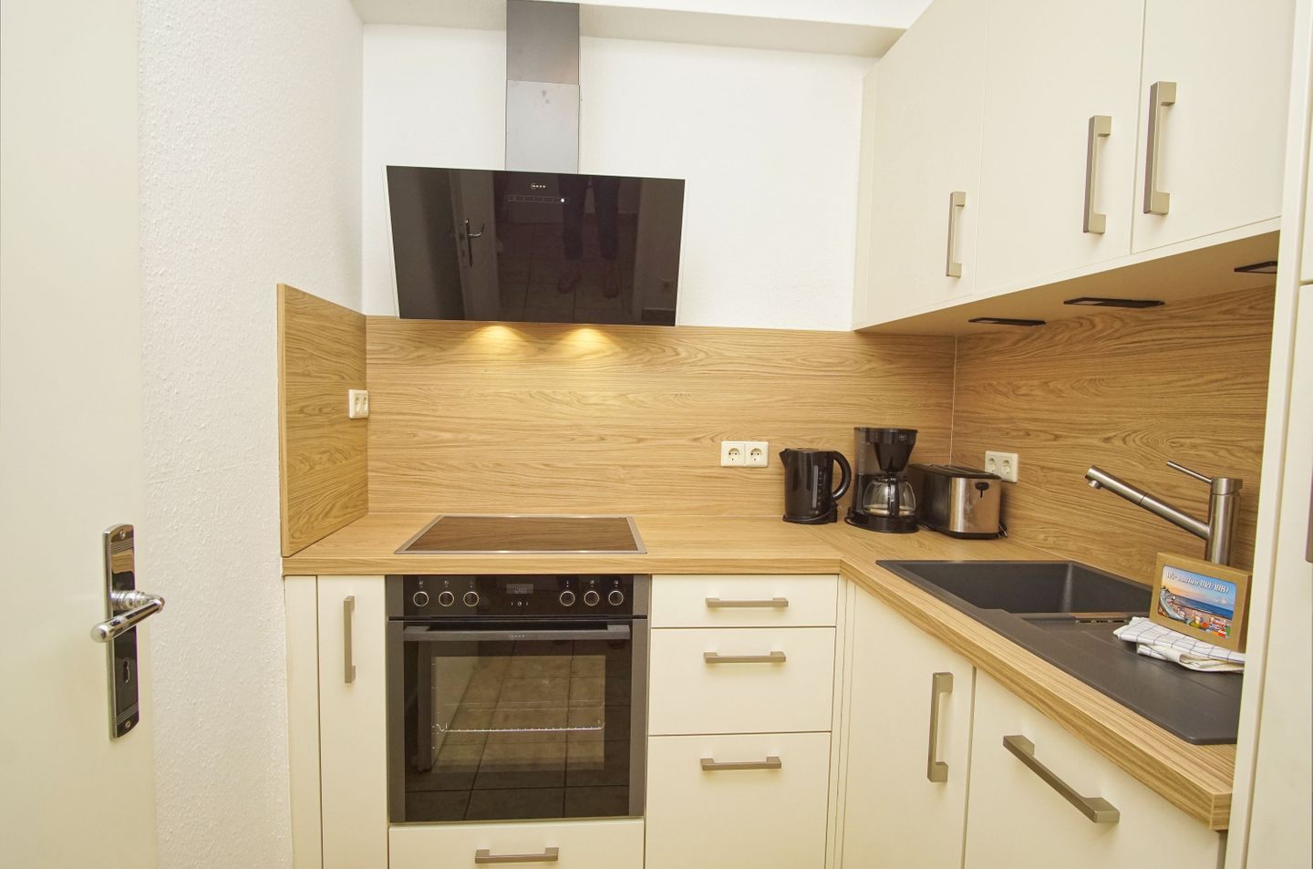 KÜCHE // separate Küche, 4-Platten Ceranherd, Kühlschrank mit Gefrierfach, Toaster, Wasserkocher, Kaffeemaschine, Spülmaschine, reichlich Besteck, Geschirr und Küchenutensilien ++
