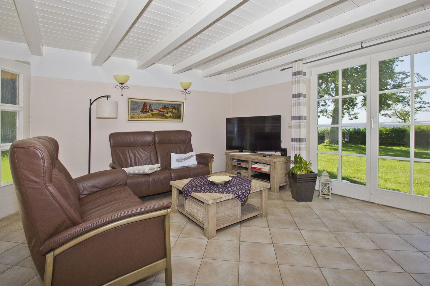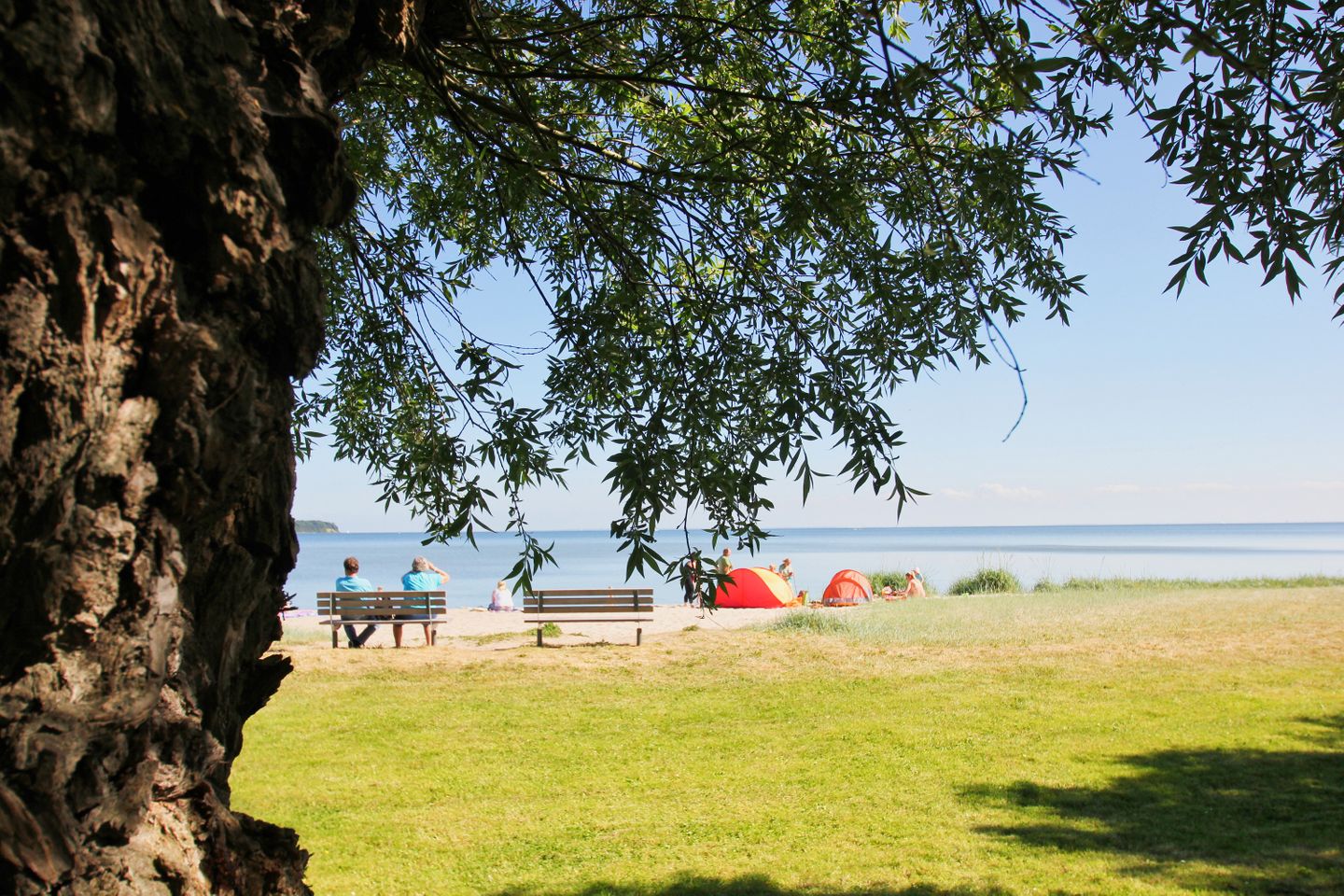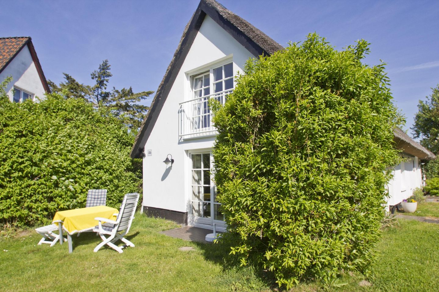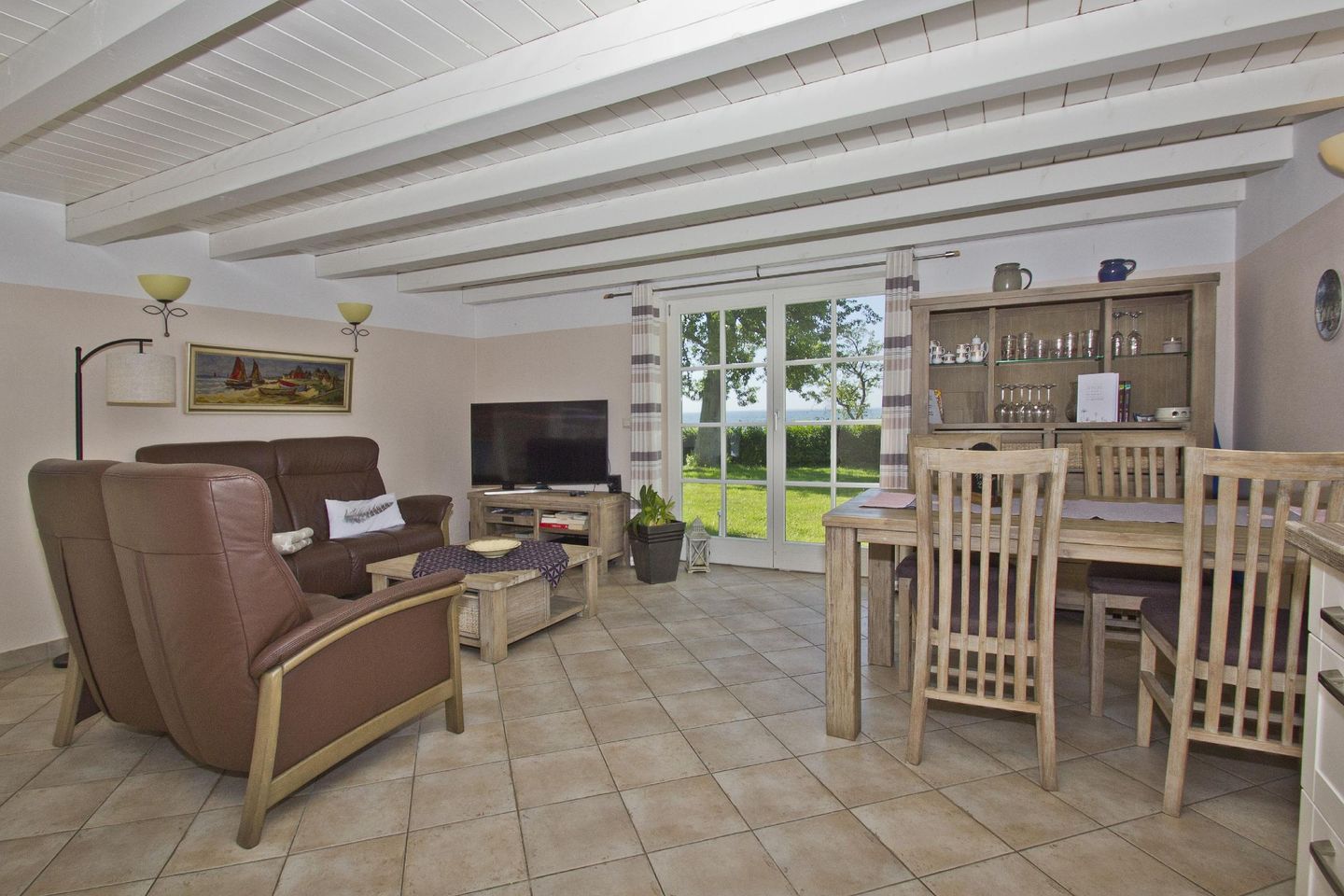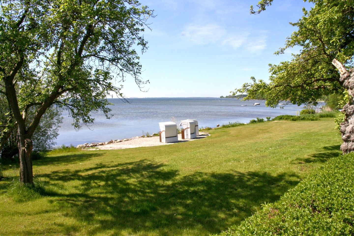 Das große Gartengrundstück grenzt auf der einen Seite an die malerischen Wiesen und Wälder der Rügener Naturlandschaft, auf der anderen Seite an die Küste des Boddens. Auf dem privaten Badezugang mit Liegewiese steht ein Strandkorb (saisonal von Mai bis Oktober) zur Verfügung.