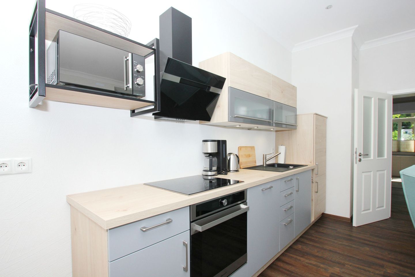 KÜCHE // offene Küche, 4-Platten Induktions-Herd, Spülmaschine, Kühlschrank mit Gefrierfach, Backofen, Toaster, Wasserkocher, Kaffeemaschine, reichlich Besteck, Geschirr und Küchenutensilien ++