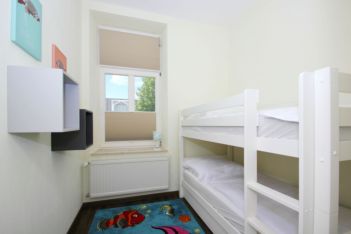 SCHLAFEN // ein Schlafzimmer mit bequemem Doppelbett und Flachbild-TV, ein Schlafzimmer mit Etagenbett und mit dritter Ebene zum Ausziehen ++