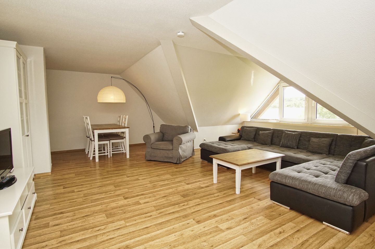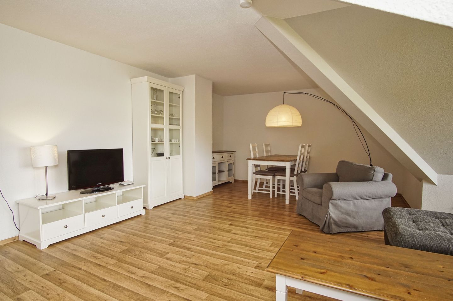 WOHNEN // Wohnraum mit Essbereich, Sitzgarnitur mit bequemer Schlafcouch, Flachbild-TV, Sat-TV ++