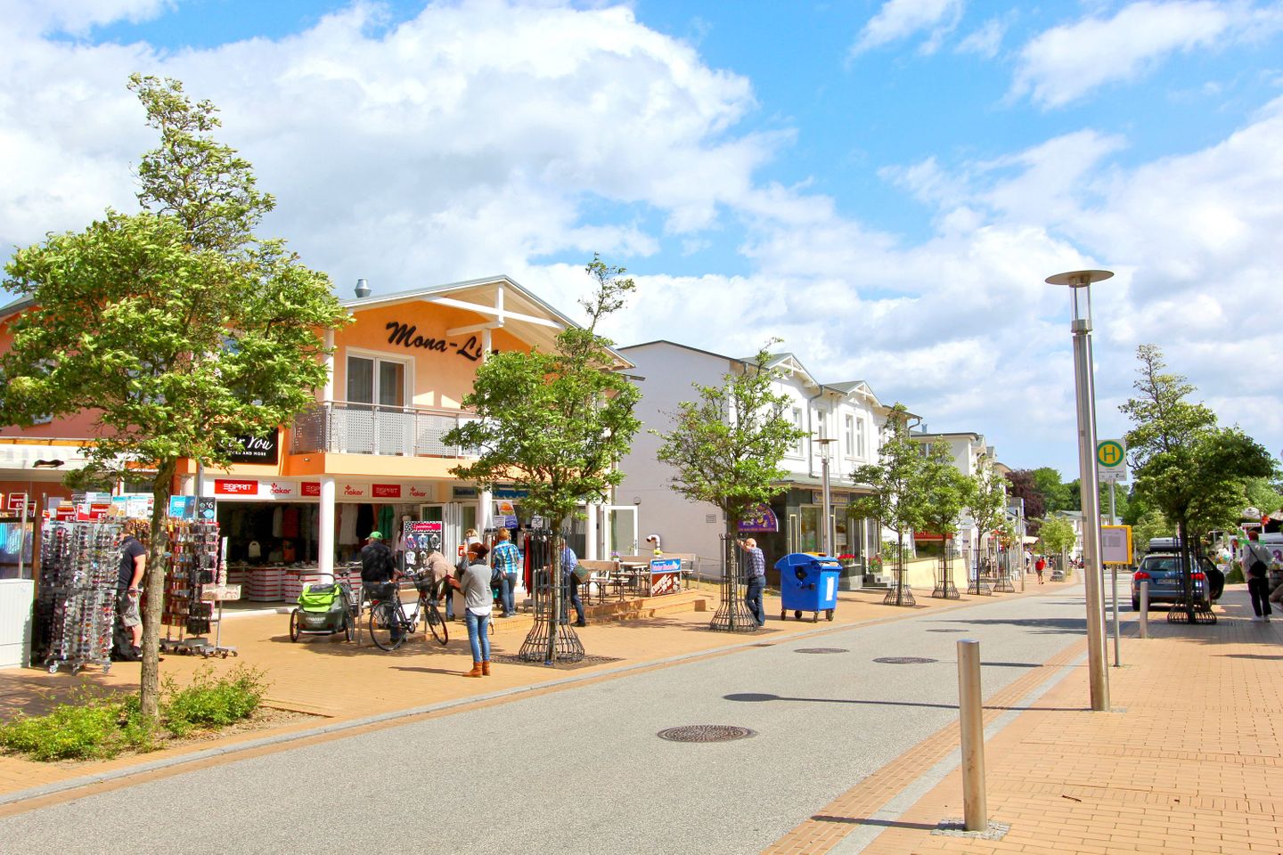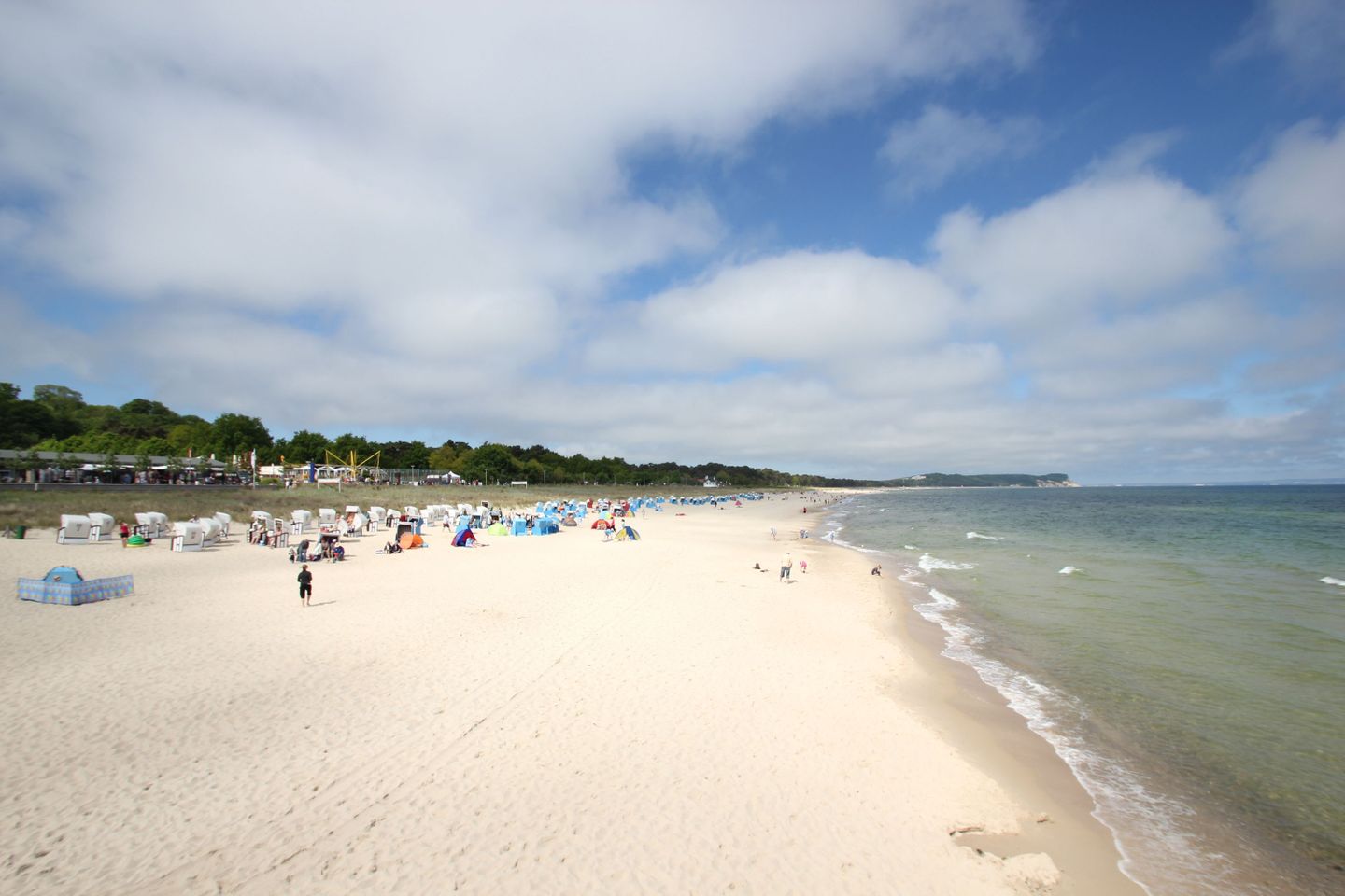 Der lange, feinsandige Nordstrand mit der Seebrücke sowie einer langen, romantischen Promenade, die bis zum nächsten Ostseebad Baabe führt, ist nach ca. 350 m Fußweg bequem erreicht.