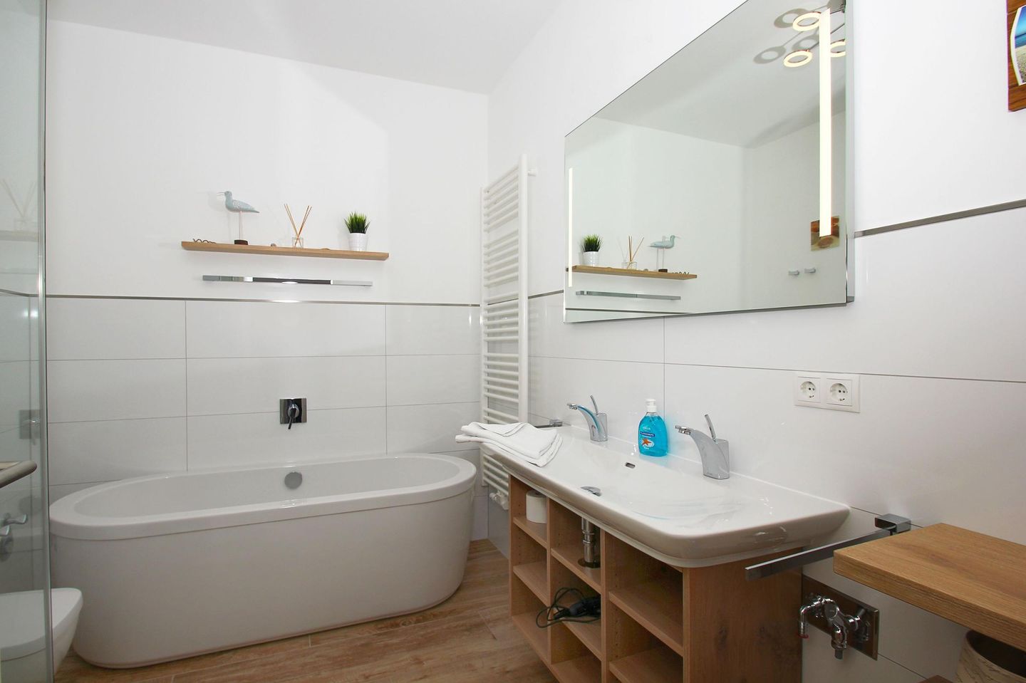 BAD // innen liegendes Bad, mit Designerbadewanne, WC, Föhn, Doppelwaschbecken, Kosmetikspiegel, Regendusche und eigener Sauna ++
