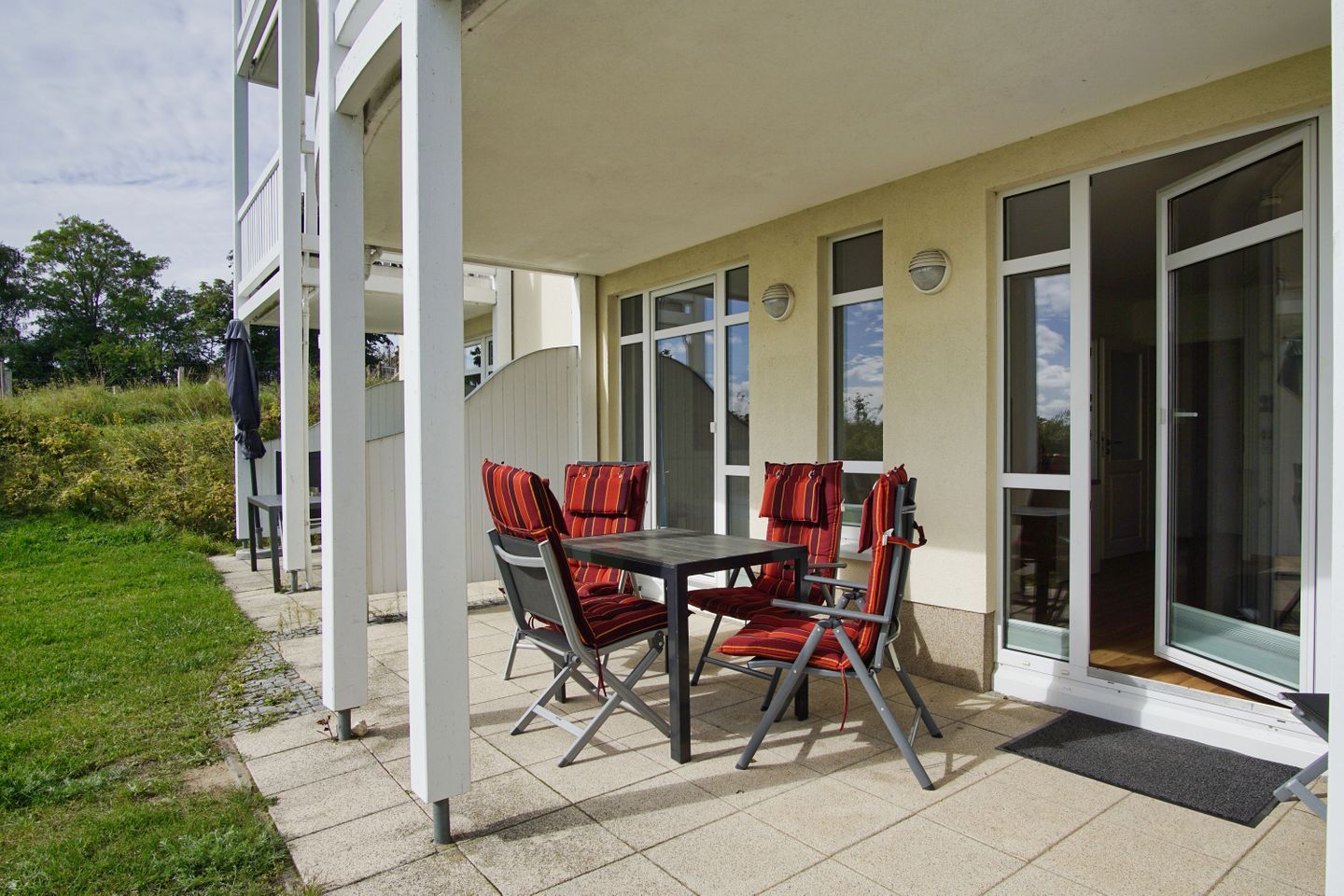 Die gepflegte, von großzügigen Rasenflächen eingefasste Anlage liegt in einer ruhigen Seitenstraße des Ostseebades Göhren.
