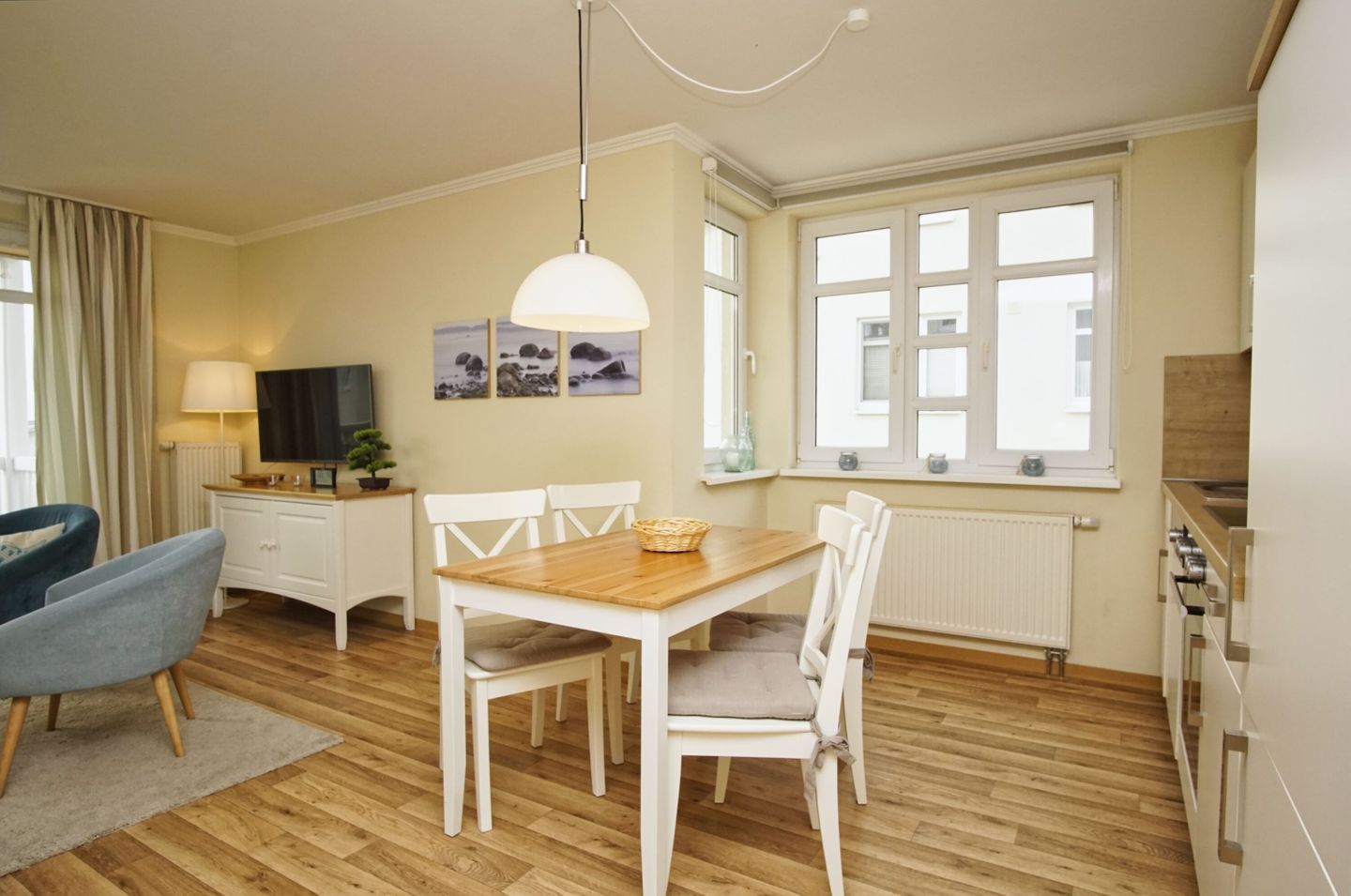 Die 1-, 2- und 3- Raum Ferienwohnungen in den Meeresblick Residenzen sind nicht nur großzügig geschnitten und komfortabel eingerichtet, die meisten verfügen darüber hinaus über eine traumhafte Aussicht über Südost Rügen und die weite Ostsee. Kostenloses WLan ist in dieser Residenzanlage selbstverständlich. Pro Ferienwohnung steht Ihnen ein PKW-Stellplatz (kostenfrei) zur Verfügung.
