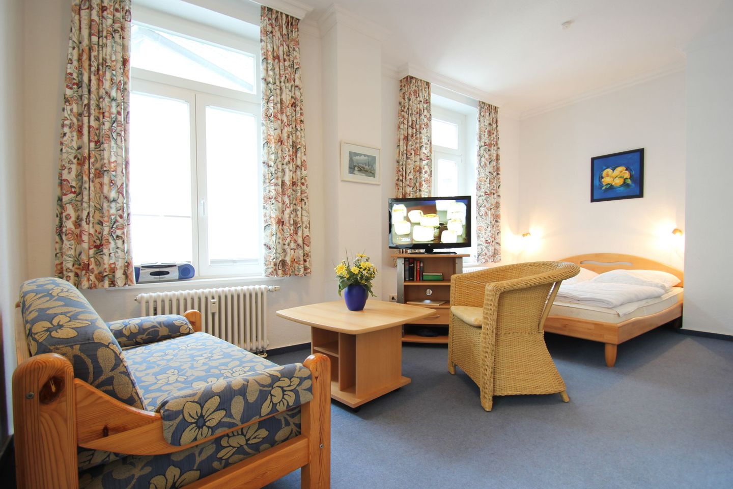 WOHNEN // Bequeme Couch, Essbereich, Flachbild-TV (Kabel) ++