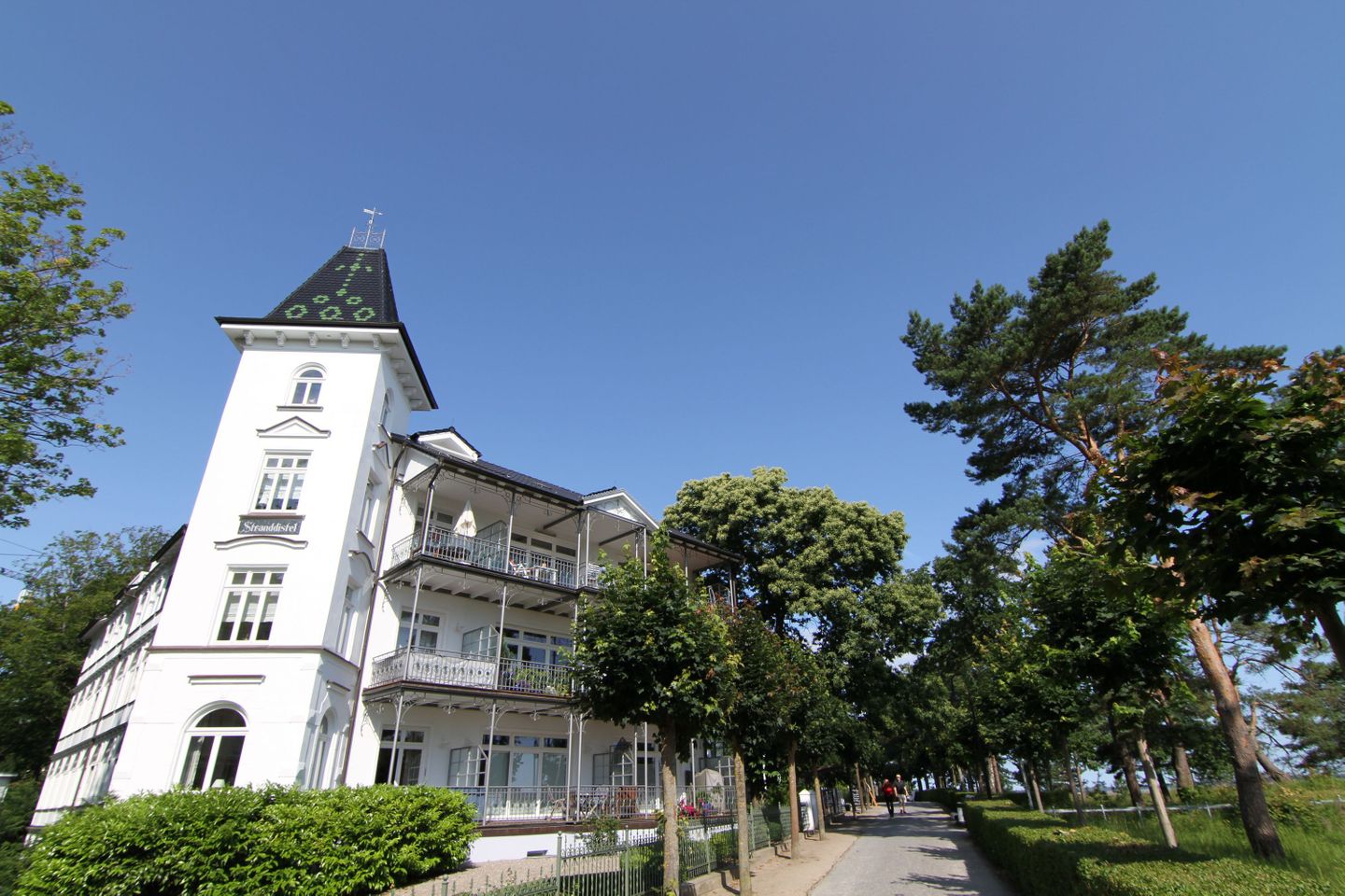 Die weiße Bädervilla befindet sich direkt am Ostseestrand des Kurortes Binz. Urlaub und Erholung wird hier „Groß“ geschrieben. In zentraler Lage sind Sie zu allem nur wenige Minuten entfernt. Zahlreiche Geschäfte entlang der Einkaufspassage laden zum Schlendern ein.