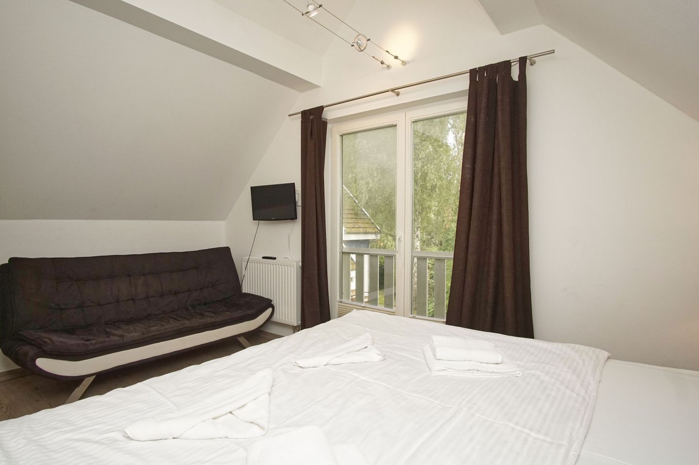 SCHLAFEN // Zwei Schlafzimmer mit bequemem Doppelbett, bequeme Schlafcouch im Wohnbereich ++