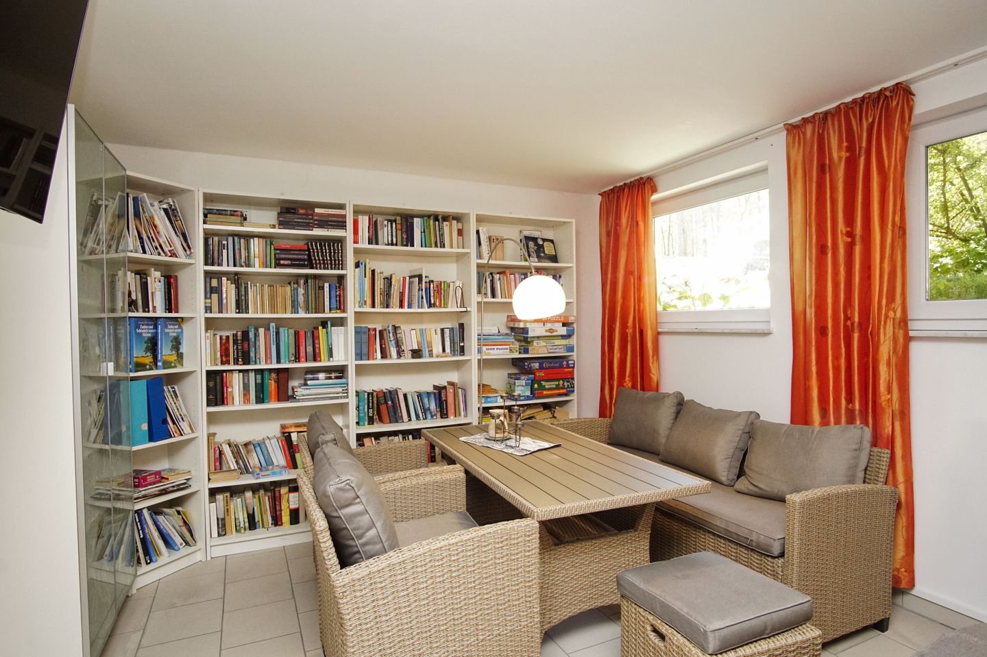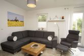 WOHNEN // Wohnraum mit Essbereich, Sitzgarnitur mit bequemer Couch, Flachbild-TV (Kabel) und Sky Komplettpaket, Radio ++