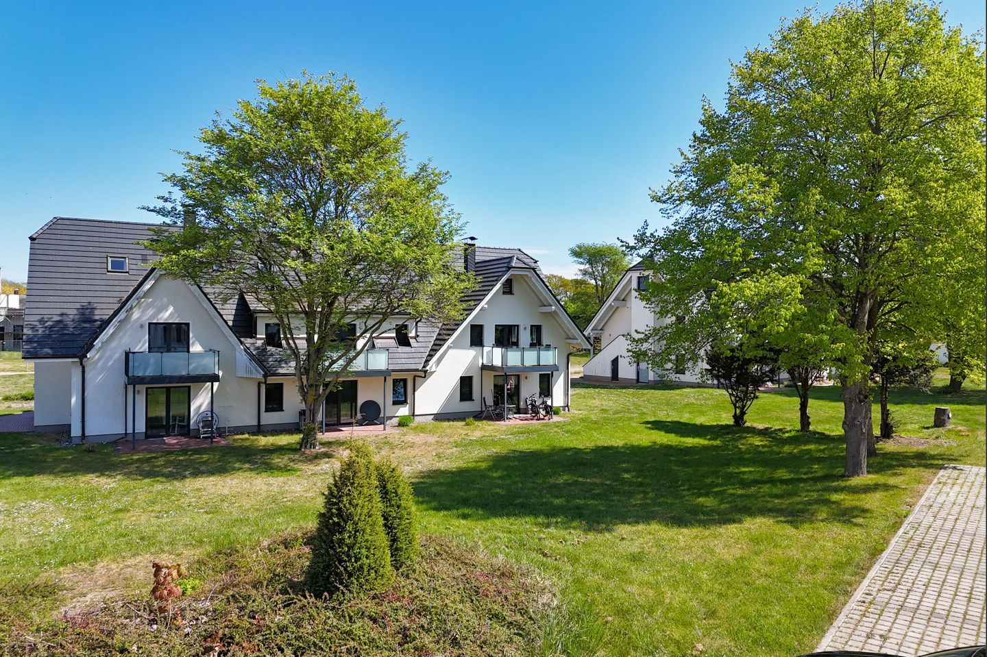 Das Strandresort Rex Rugia (H-1010) befindet sich in Lobbe auf einem rund 85.000 m² großen, parkähnlich gestalteten Areal mit weitläufigen Grünflächen. Charakteristisch für die Anlage sind die charmanten, reetgedeckten Villen im norddeutschen Stil. In den Häusern erwarten Sie modern und komfortabel ausgestattete Appartements mit zwei, drei oder vier Zimmern – jeweils ergänzt durch einen Balkon oder eine Terrasse.