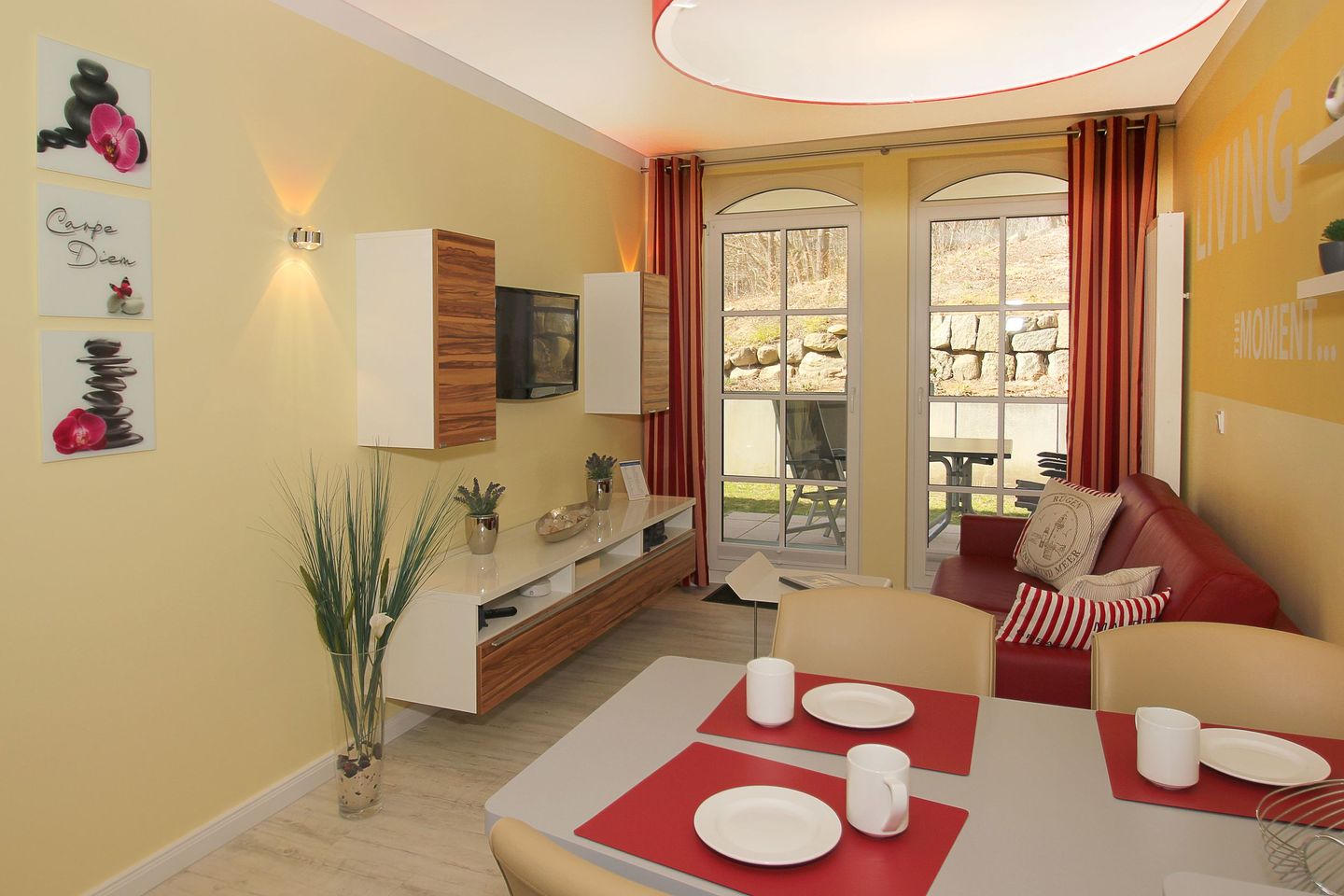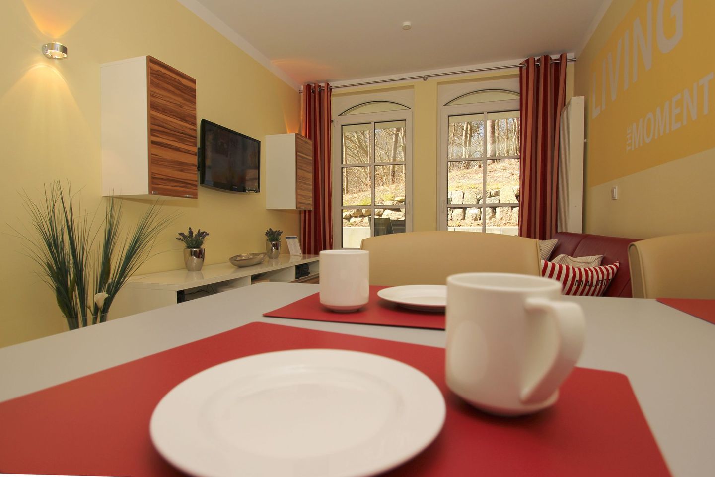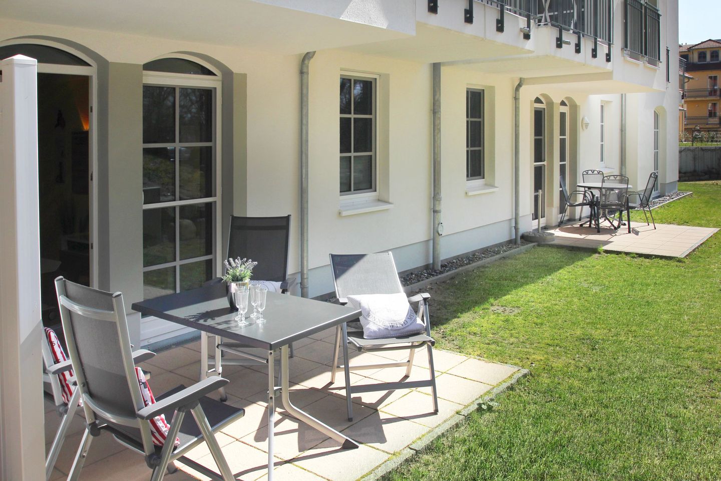 Freuen Sie sich auf eine exquisite 2- Raum Wohnung mit hochwertiger Ausstattung und einer großzügigen Terrasse mit Möblierung für 4 Personen.