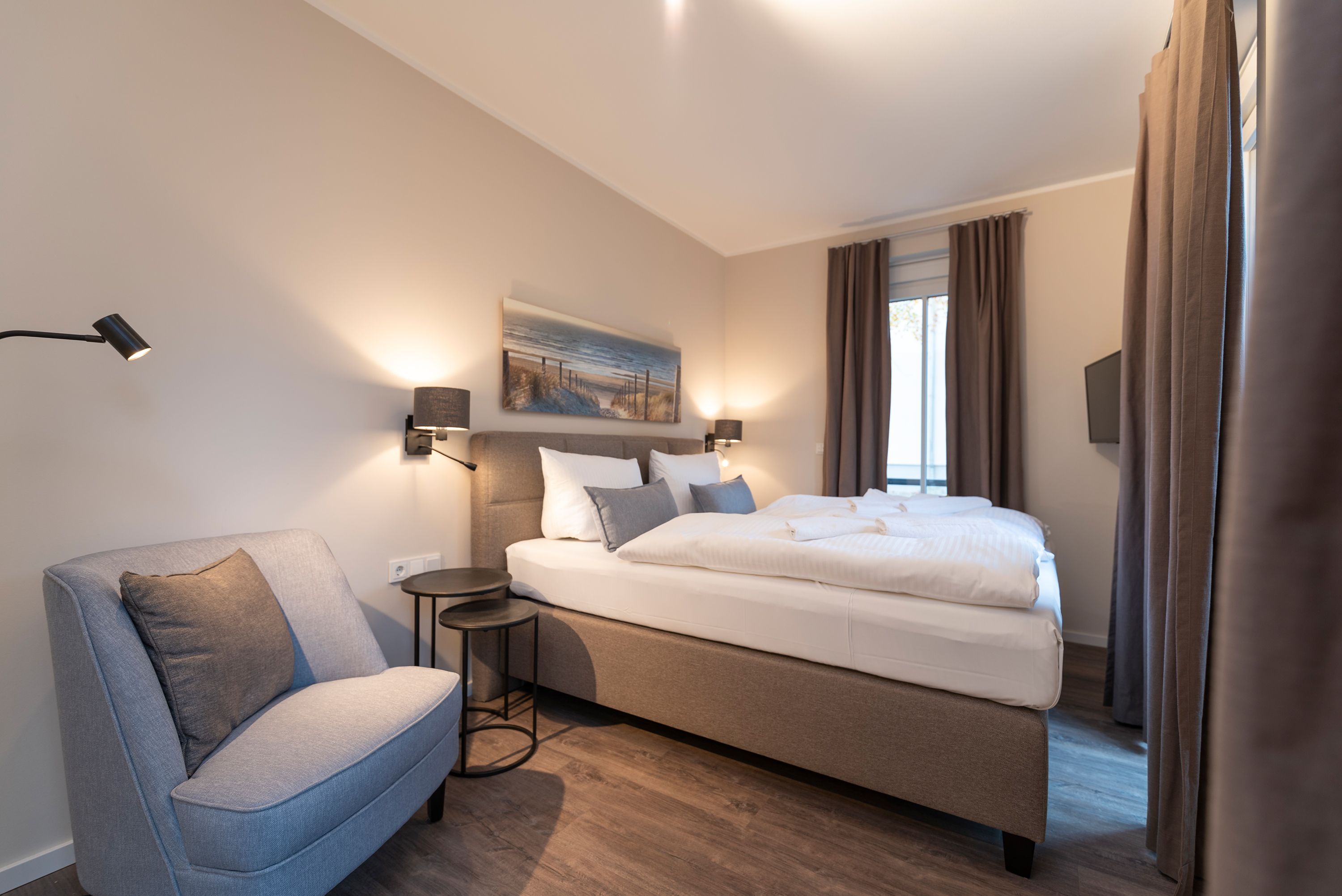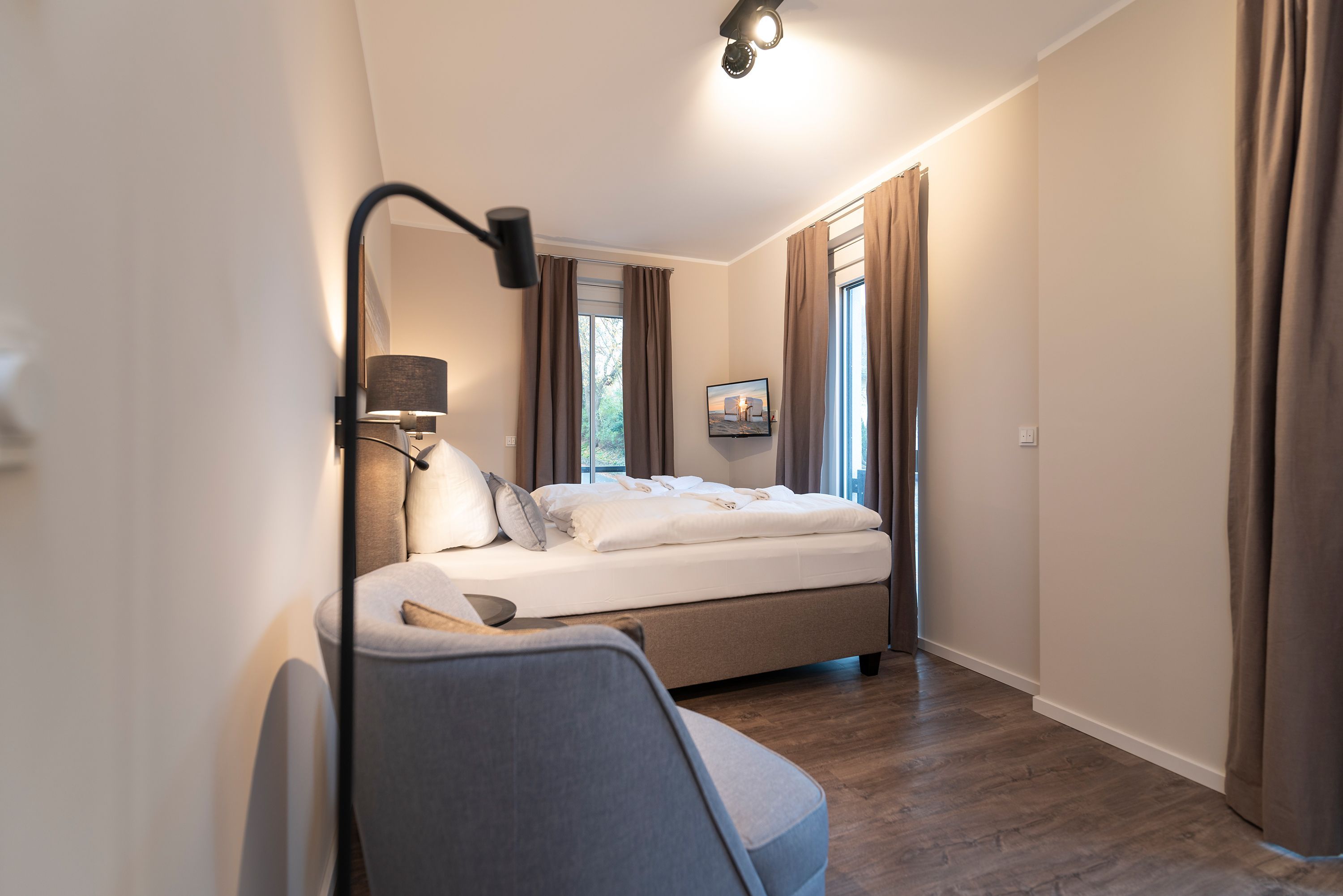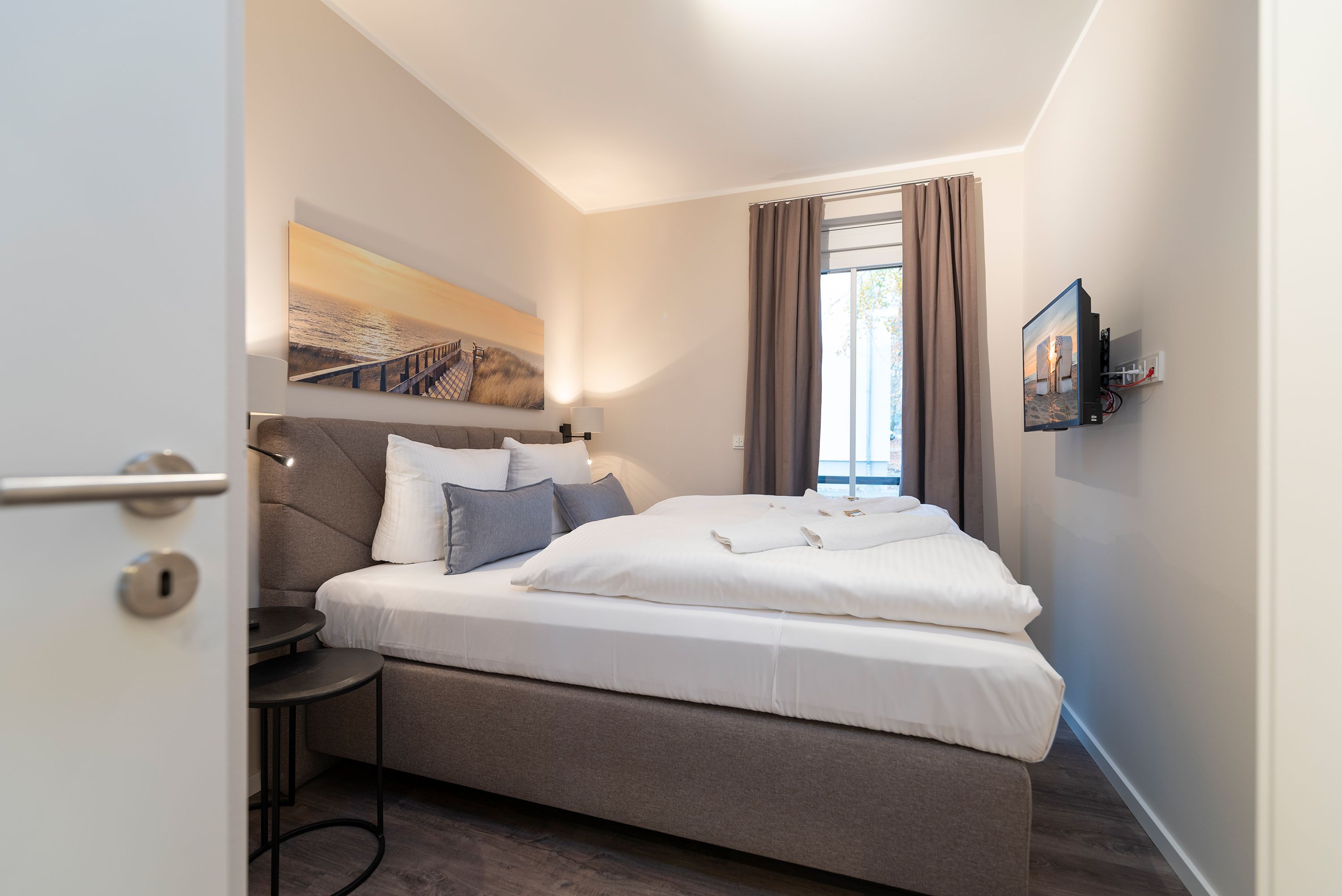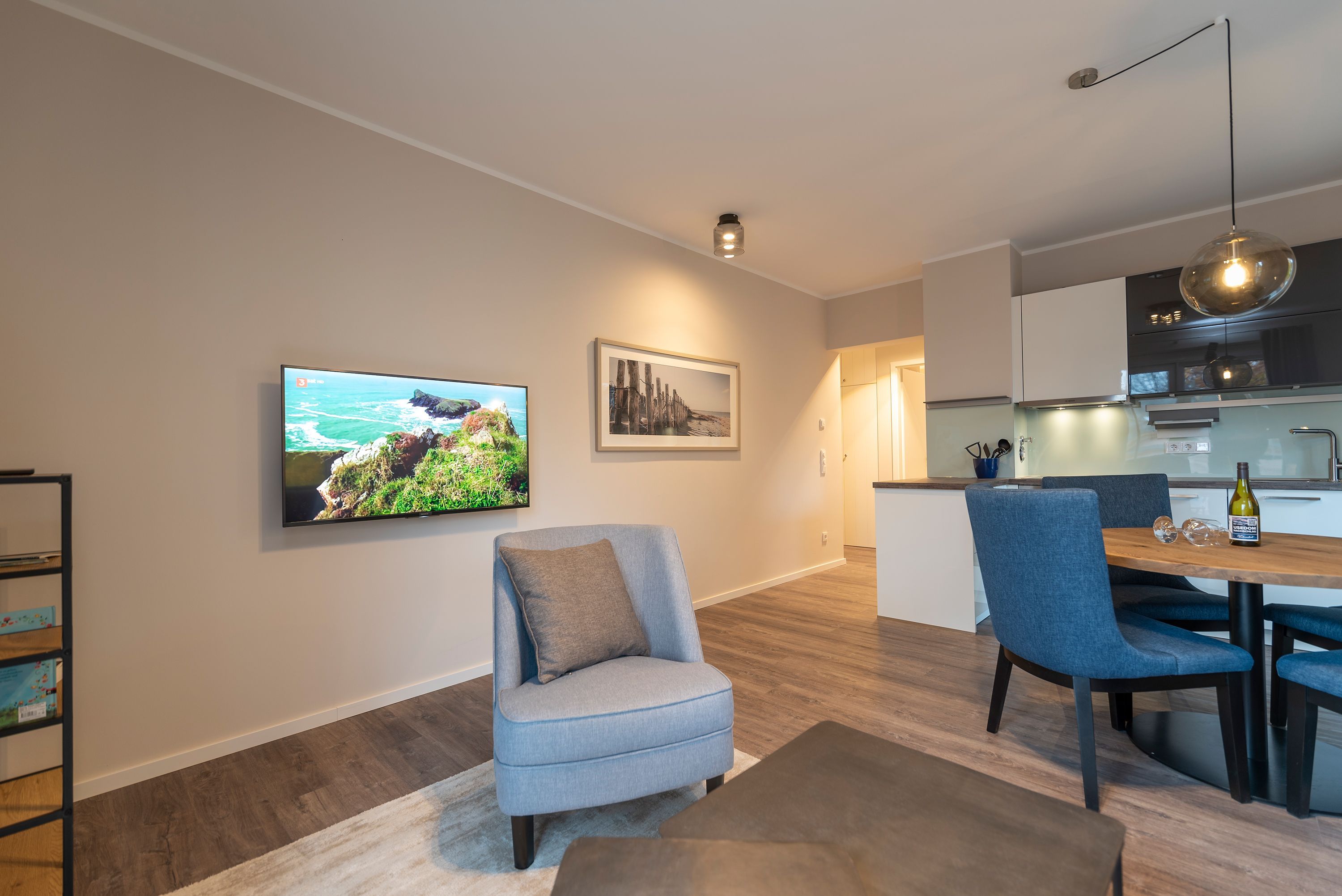 Im 1. Obergeschoss erwartet Sie dieses exquisit eingerichtete Appartement, das bequem über einen Fahrstuhl direkt aus der Tiefgarage erreichbar ist. Auf 65 Quadratmetern Wohnfläche, gestaltet in einem ansprechenden, modernen Design, bietet das Appartement Verdandi 13 Raum für bis zu vier Erwachsene und ein Kleinkind. Hier finden Sie alles, was Sie für einen entspannten Urlaub benötigen.
