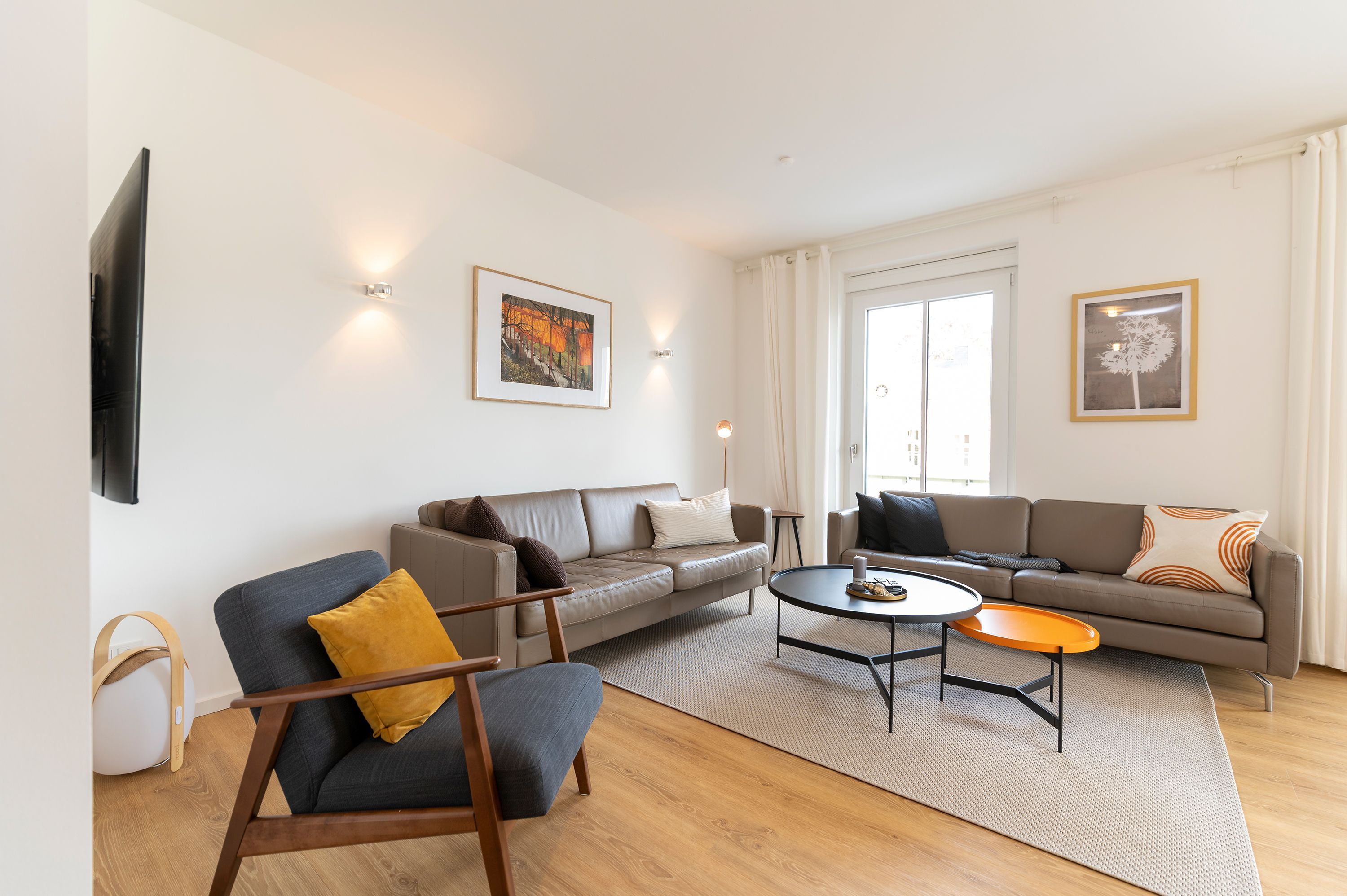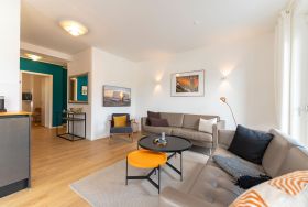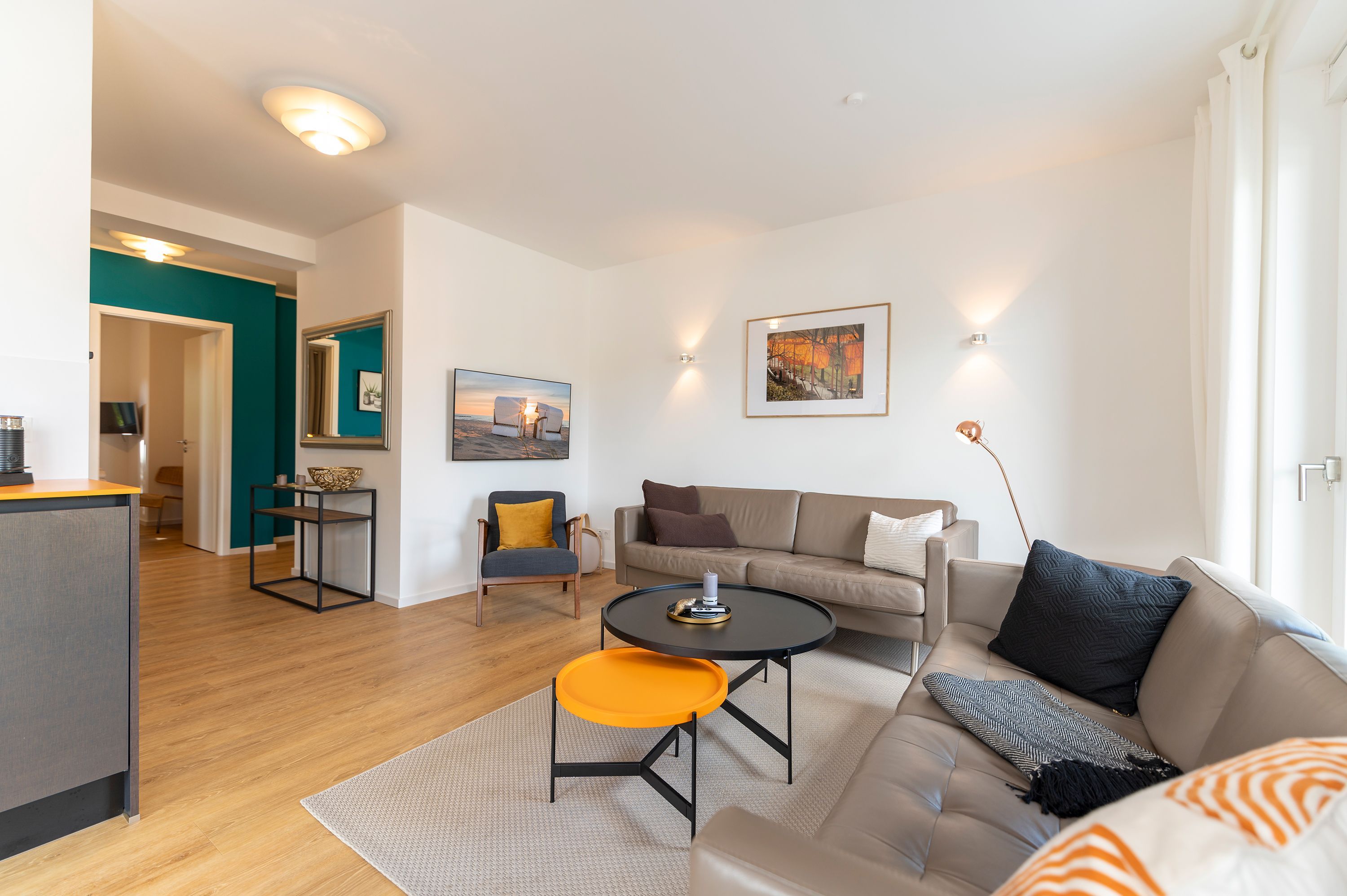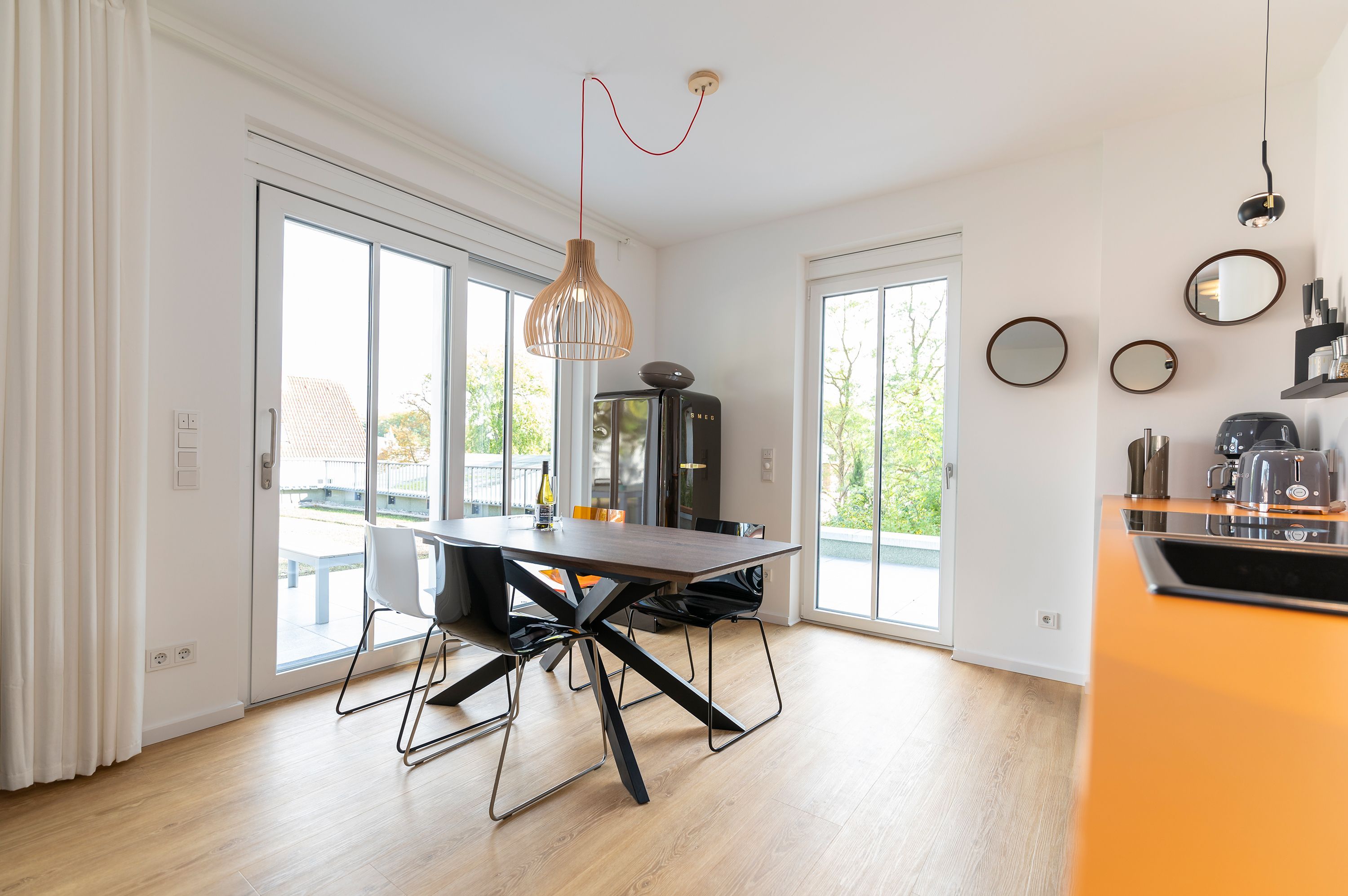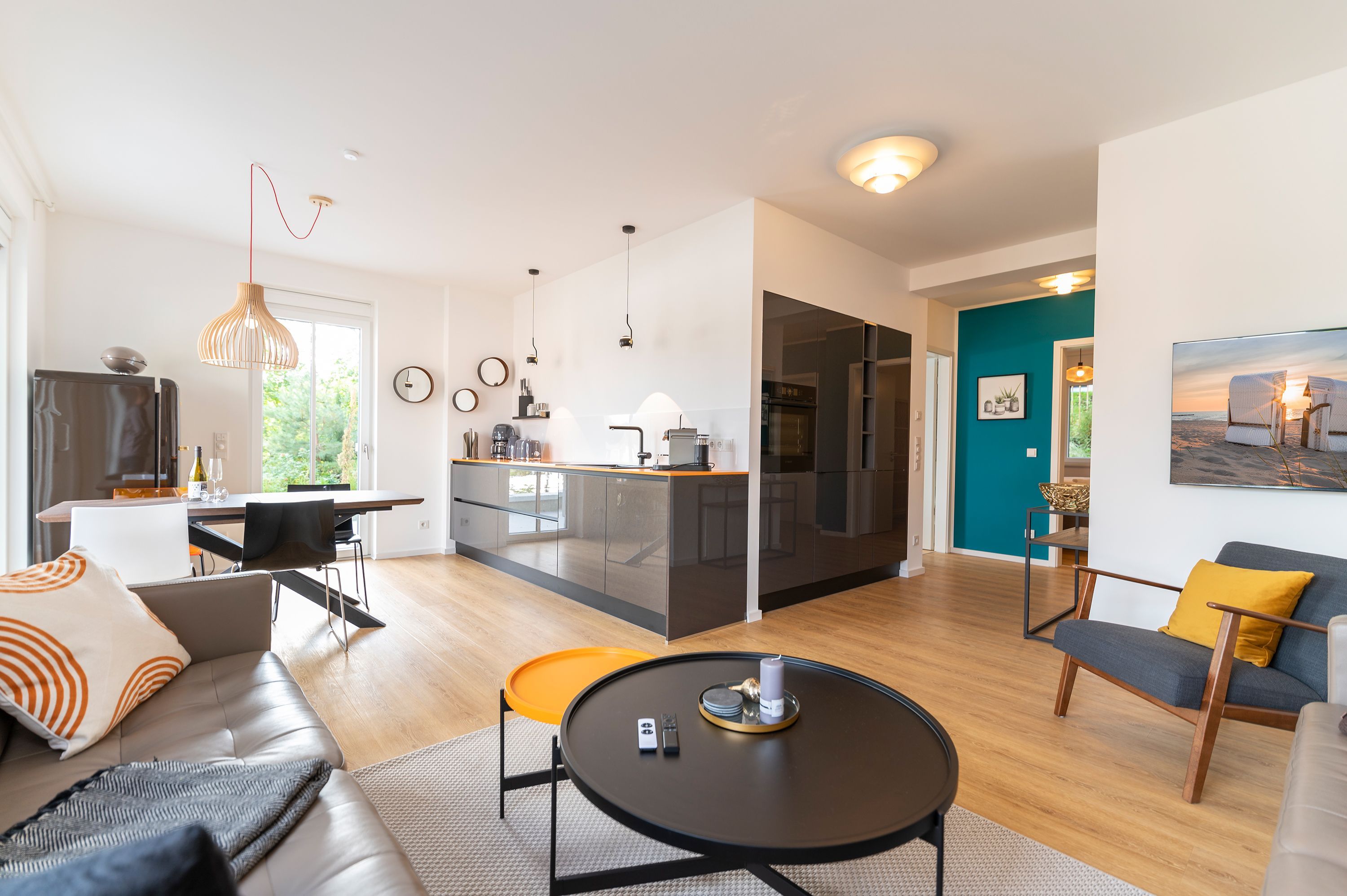 Die 73 Quadratmeter große Wohnung bietet Platz für bis zu vier Personen und ein Kleinkind, und auch Ihr vierbeiniger Freund ist hier herzlich willkommen. Genießen Sie modernen Wohnkomfort in drei stilvoll eingerichteten Zimmern. Der offene und großzügige Wohn- und Essbereich mit seiner voll ausgestatteten Küchenzeile, inklusive Nespressomaschine und Borakochfeld, lädt zum gemeinsamen Kochen und Verweilen ein. Eine Waschmaschine ist für Ihren Komfort ebenfalls vorhanden.