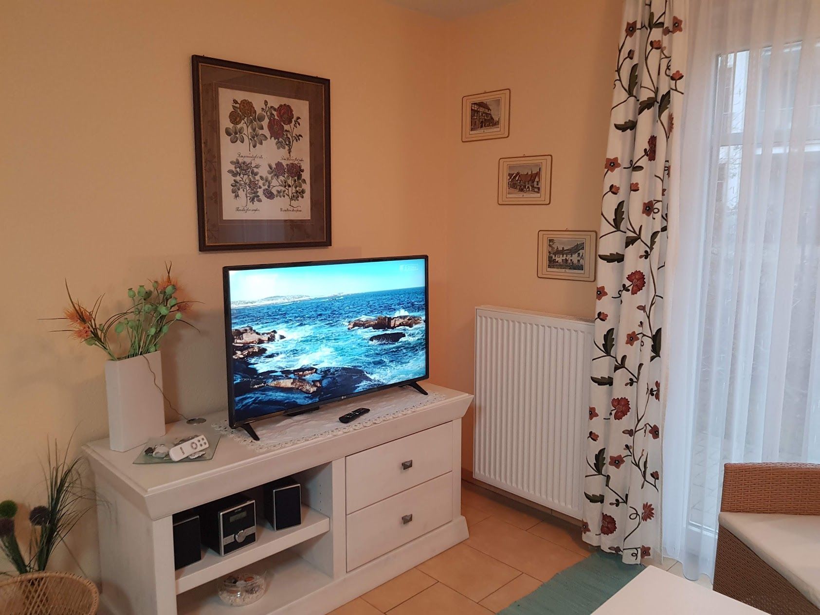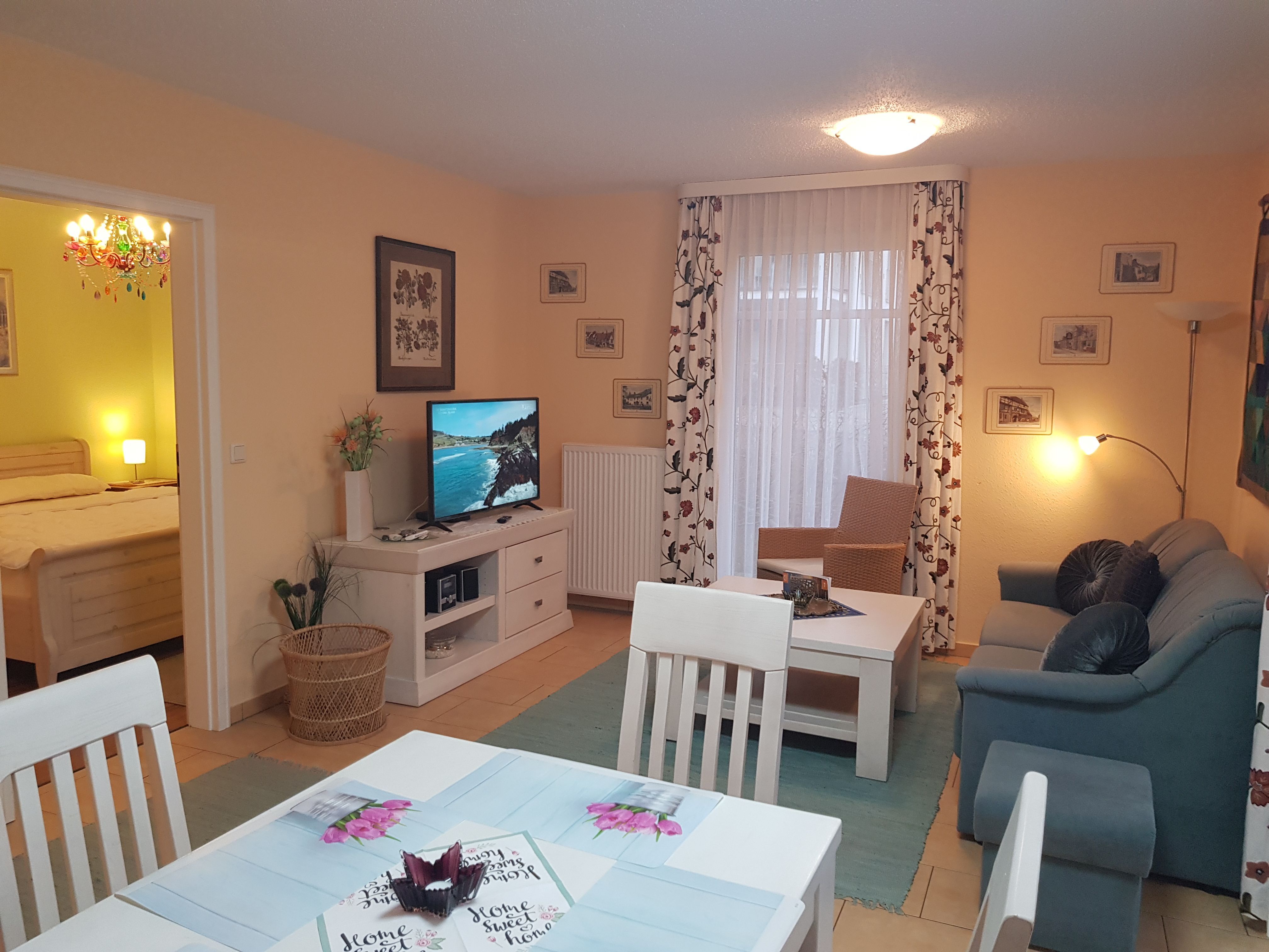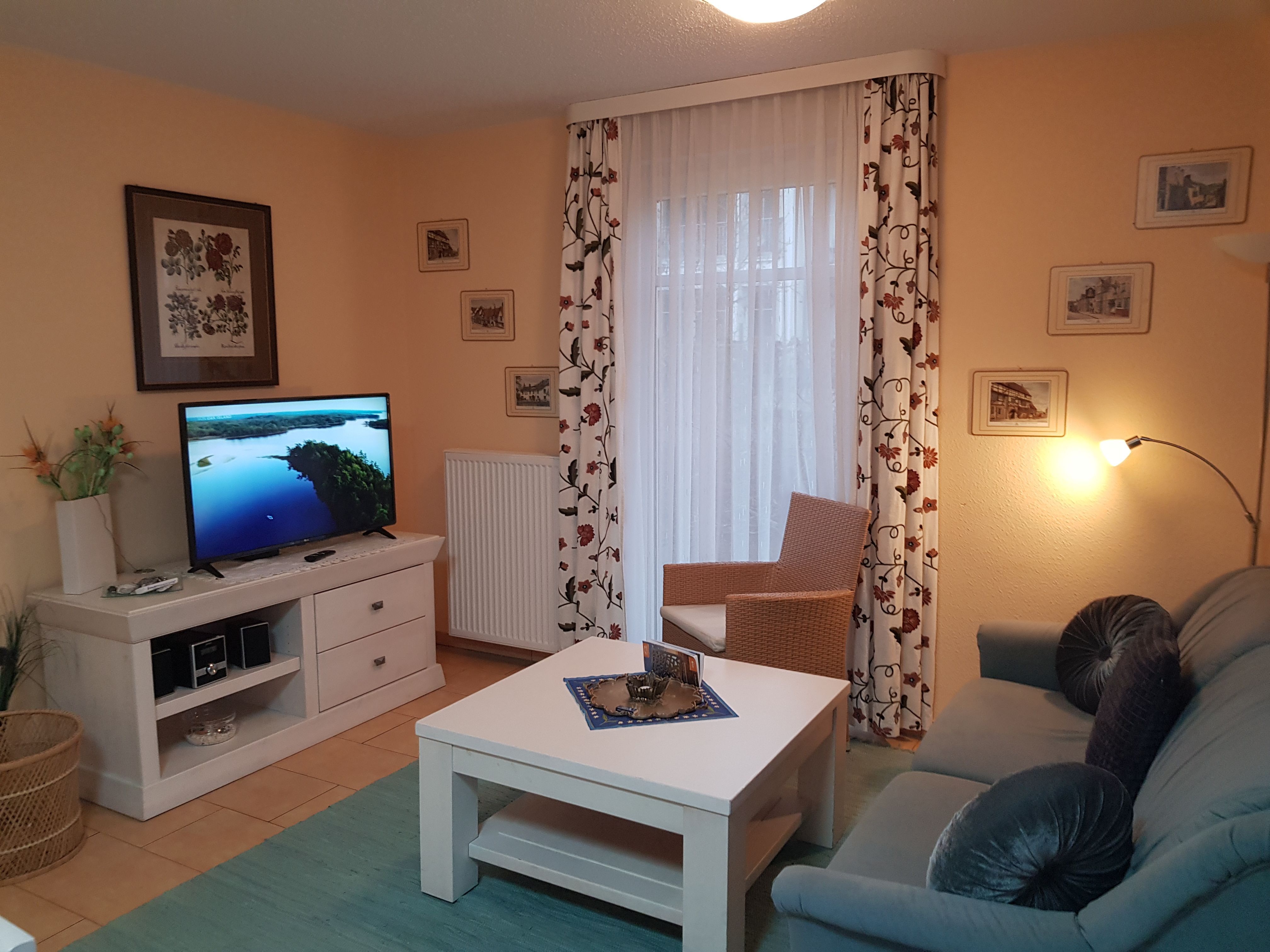 Die 60 m ² große Ferienwohnung 04 befindet sich im Parterre in der Villa Seefisch . Sie bietet mit ihren zwei Zimmern ausreichend Platz für bis zu 4 Personen. Die Lage in einer ruhigen Seitenstraße befindet sich die Ferienwohnung  weniger als 10 Gehminuten von der Strandpromenade entfernt. Die Ferienwohnung verfügt über einen Wohnbereich mit offener Küche, ein Schlafzimmer, ein Bad mit Dusche und einer möblierten Terrasse. Im gemütlichen Wohnbereich laden bequeme Polstergarnituren und ein Flachbildfernseher zu geselligen Abenden ein. Der Essbereich ist im Wohnbereich integriert und ein Tisch mit 4 Stühlen bietet hier ausreichend Platz zum gemeinsamen Essen. Die hier angrenzende Küchenzeile ist mit einem Kühlschrank mit Gefrierfach, einem Geschirrspüler und einem Backofen mit Kochfeld ausgestattet. Eine Kaffeemaschine, ein Toaster und ein Wasserkocher stehen Ihnen hier selbstverständlich zur Verfügung.Im Schlafzimmer bietet Ihnen ein Doppelbett ausreichend Platz für einen erholsamen Schlaf.Das Badezimmer ist mit einer Dusche und WC ausgestattet.Lassen Sie den Abend nach einem erlebnisreichen Tag gemütlich auf der überdachten Terrasse ausklingen und genießen Sie die idyllische Ruhe. Auf Wunsch stellen wir Ihnen ein Kinderbett und einen Hochstuhl zur Verfügung. Zu dieser Wohnung gehört ein kostenloser PKW-Stellplatz auf dem Grundstück in der Ulmenallee  7.