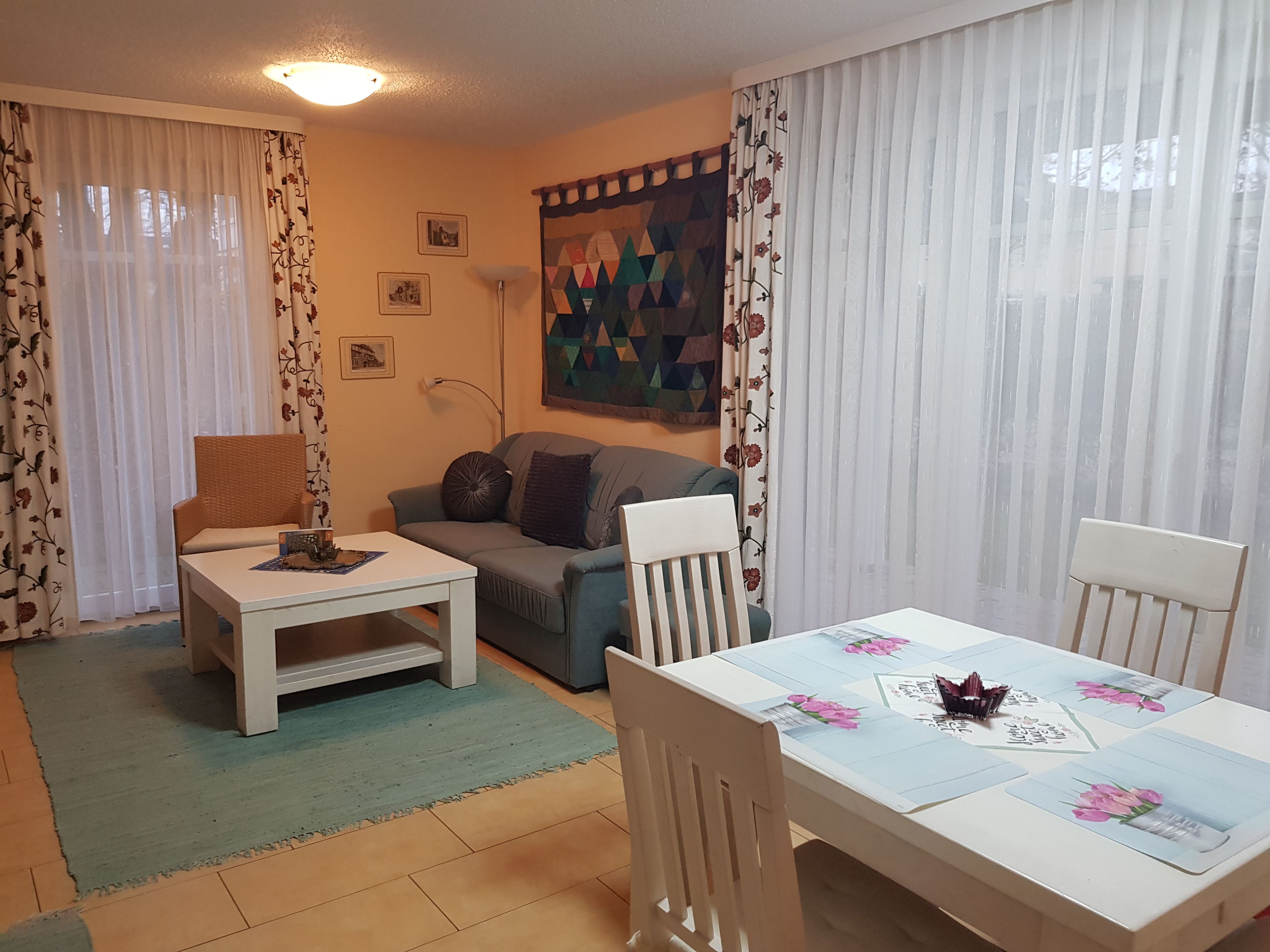 Diese schöne 2 Raumwohnung mit Terrasse befindet sich in einem Haus mit mehreren Ferienwohnungen. Direkt am Haus befindet sich Ihr Parkplatz. Für Ihre Fahrräder ist ein abschliesbarer Raum vorhanden.