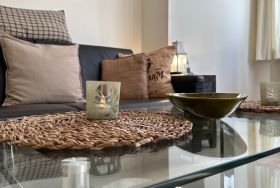Der hübsche Wohnraum ist mit Vinyl-Designer-Boden ausgelegt, eine Schlafcouch, einen Esstisch mit 4 Stühlen, einen Vitrinenschrank, Flachbild-TV, WLAN (ohne Gewähr) und eine Stereoanlage runden das Bild ab. Im Schlafzimmer befindet sich ein helles Doppelbett und ein heller Kleiderschrank sowie ein weiterer Flachbildfernseher. Ein sonniger Südbalkon schließt sich mit einem seitlichem Meerblick an. Eine vanillefarbene Einbauküche mit 4-Platten-Ceranfeld, Geschirrspülmaschine und eine Mikrowelle mit Grill stehen Ihnen selbstverständlich zur Verfügung. Der Boden ist mit terracottafarbenen Fliesen ausgelegt. Im weißen Badezimmer befindet sich eine Dusche (die Duschkabine wurde im März 2019 erneuert) und eine Handtuchheizung. Ein Haarföhn steht Ihnen auch zur Verfügung.