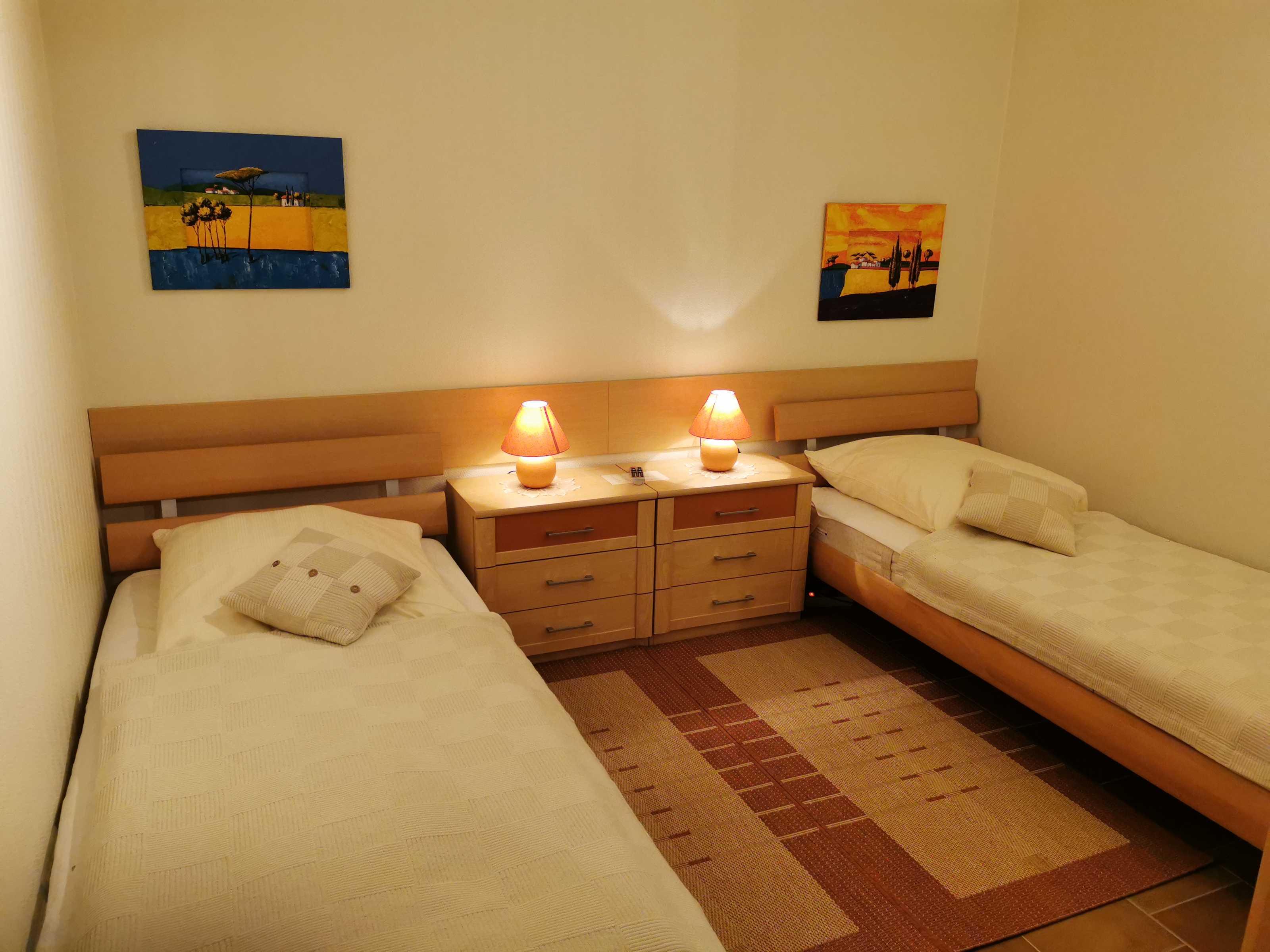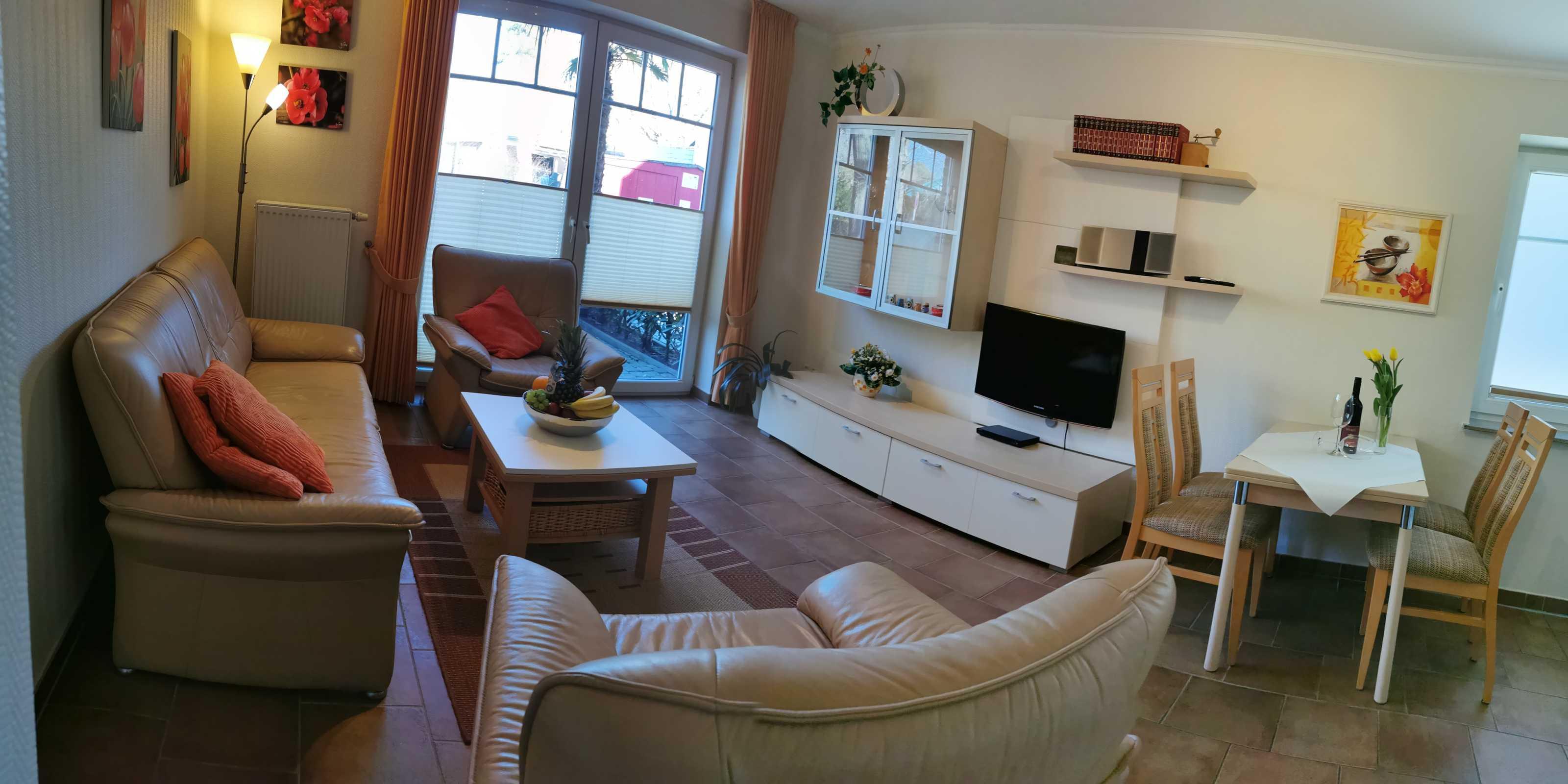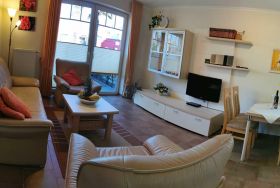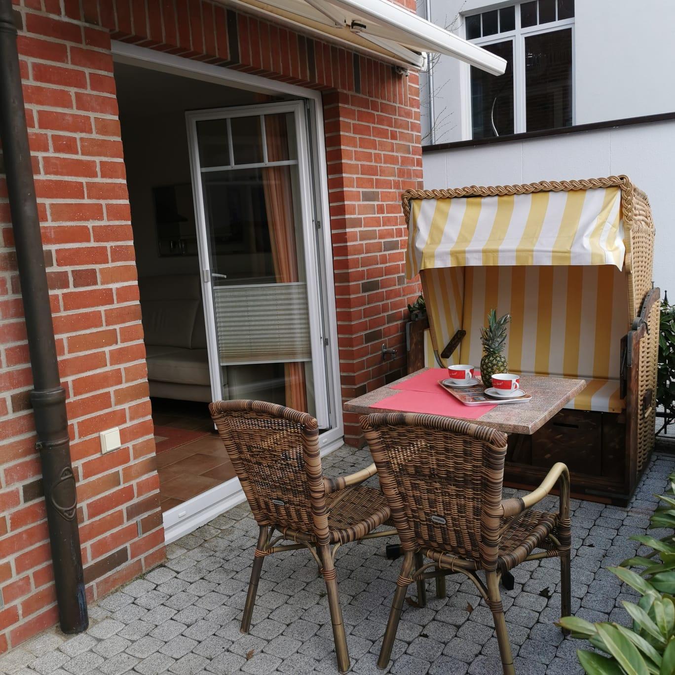 Die Wohnung befindet sich im Erdgeschoss, Kurparkstr. 7, wenige Min. vom Strand. Optimale Aufteilung ca. 72m². Sie ist neuwertig, voll möbliert und mit allem Komfort wie zwei Fernseher mit Radio u. Musiksender versehen. Wohn- und Essbereich mit Ausgang auf die Terrasse mit Strandkorb, Flur, 2 Schlafräume (Untergeschoß mit Fußbodenheizung), gr. Duschbad, Kosmetikspiegel, Einbauküche mit Eßbereich zum Wohnzimmer (Geschirrspüler, Backofen, Ceranfeld, Gefrierfach, Mikrowelle, Teezubehör usw.)Terrakottafliesen, sehr moderne Einrichtung, TV-Überwachung, Kabel-TV, Wlan, Aufzug. Kostenlose Stellplätze u. Fahrradabstellplatz befinden sich auf dem abgeschlossenen Grundstück. Im Haus befindet sich ein Sauna-Wellnessbereich, Waschmaschine,Trockner. Unsere Preise variieren, je nach Saison, zzgl. Endreinigung, zubuchbar Wäschepaket Hund.