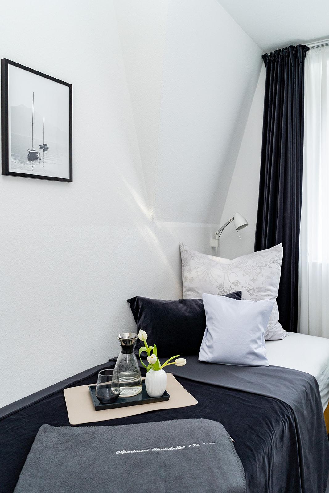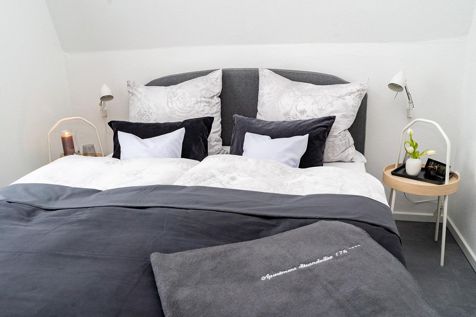 Neues Apartment **** für 2-3 Personen mit Balkon in der 3.Etage (Lift). Das Apartment liegt in der Strandallee 176 in Timmendorfer Strand und hat ein Wohnzimmer, ein Schlafzimmer mit frz. Bett, ein Schlafzimmer mit Einzelbett,