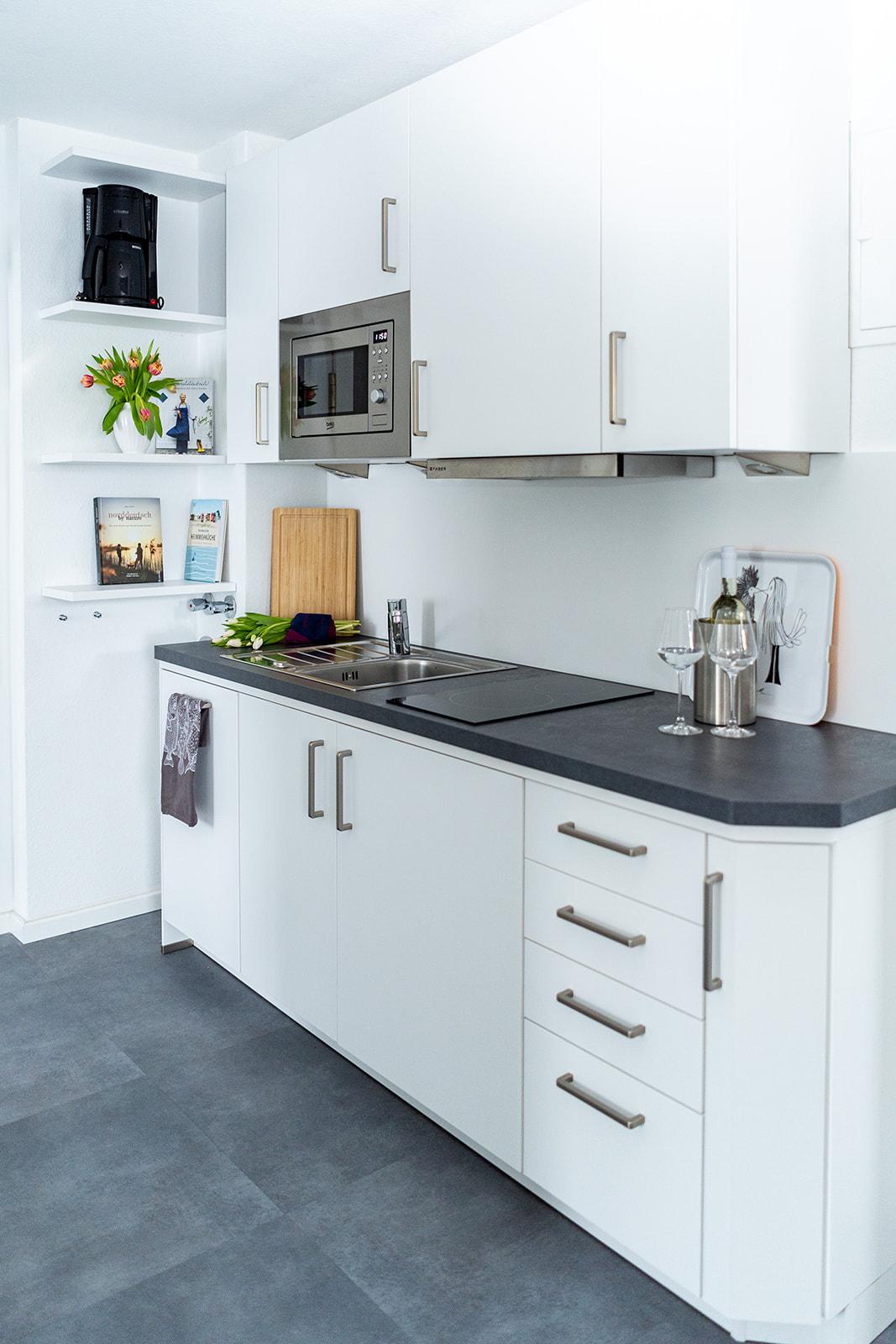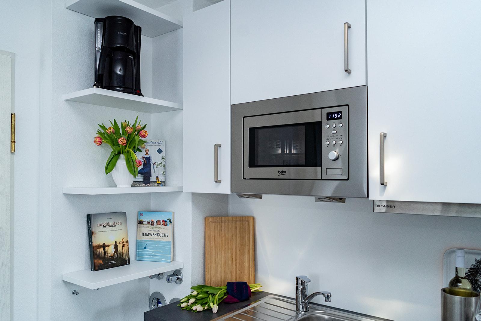 Dusche /WC und Küche. Es befindet sich in einem Haus mit 12 Ferienapartments. Zum Strand, zu den Strandkörben, zur Promenade und zur Seebrücke mit dem neu erbauten spektakulären Teehaus, sind es nur wenige Meter.