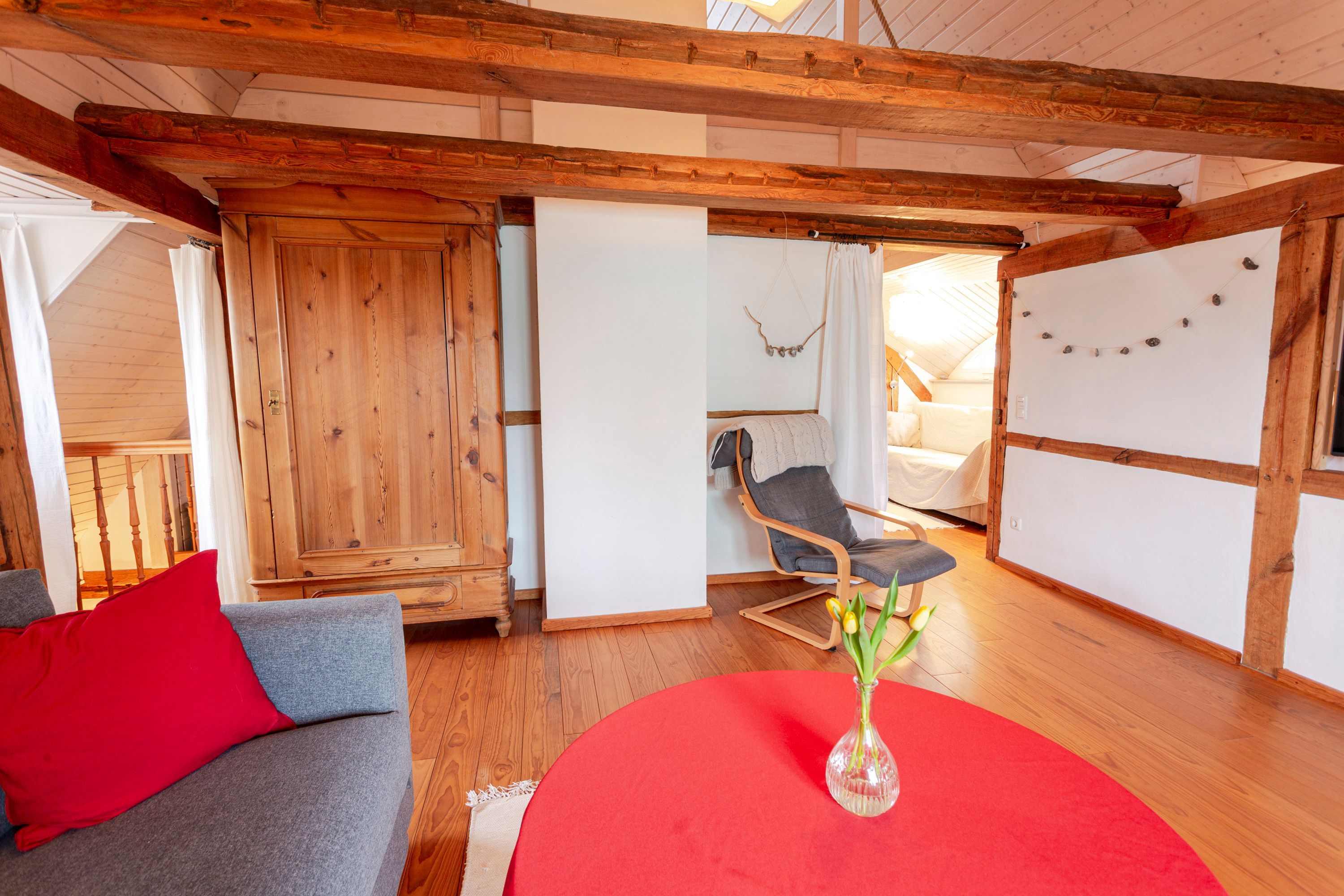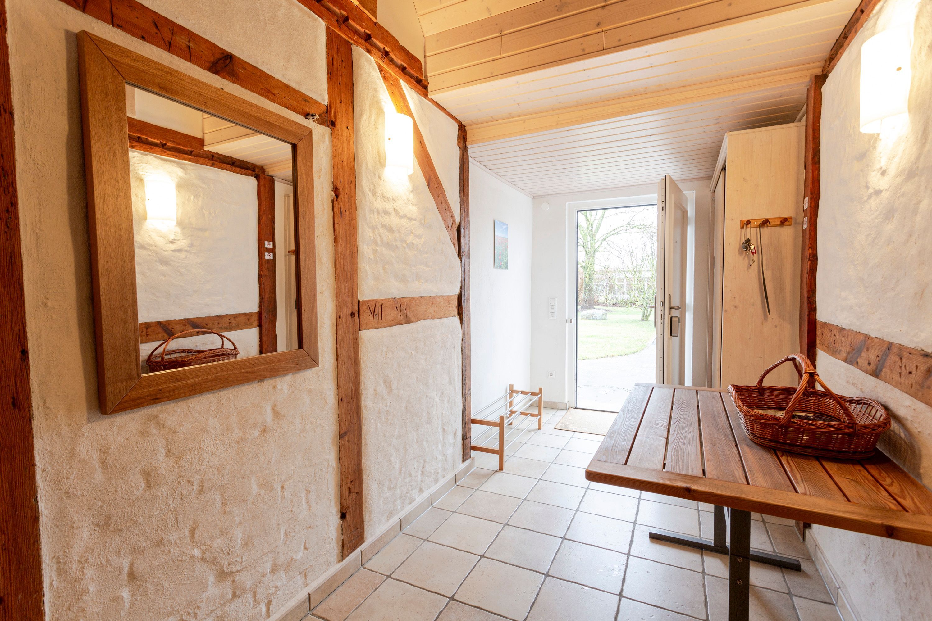 Die Ferienwohnungen im Haus Klein Kapelle befinden sich in Gingst auf der Insel Rügen und sind über einen eigenen separaten Eingang im Erdgeschoss erreichbar. Die Ferienwohnung 2 erstreckt sich über 2 Etagen und ist für bis zu 6 Personen geeignet. Sie bietet ein offenes Raumkonzept mit 3 Schlafnischen, großem Wohnbereich und voll ausgestatteter Küche. Die beiden Badezimmer sind mit Dusche und Badewanne ausgestattet. Das Haus Klein Kapelle ist über 200 Jahre alt und hat aufgrund der Balkenstruktur an wenigen Stellen im Dachgeschoss eine Stehhöhe von 1,80m. Die Ferienwohnung 3 im Erdgeschoss des Hauses ist für bis zu 4 Personen und ein Baby ausgelegt. Neben einem gemütlichen Wohnzimmer mit Kamin, einem separaten Schlafzimmer und einer voll ausgestatteten Küche steht ein Badezimmer mit Badewanne, WC und Waschmaschine zur Verfügung. Als Highlight kann hier die separate Sauna hinzugebucht werden.