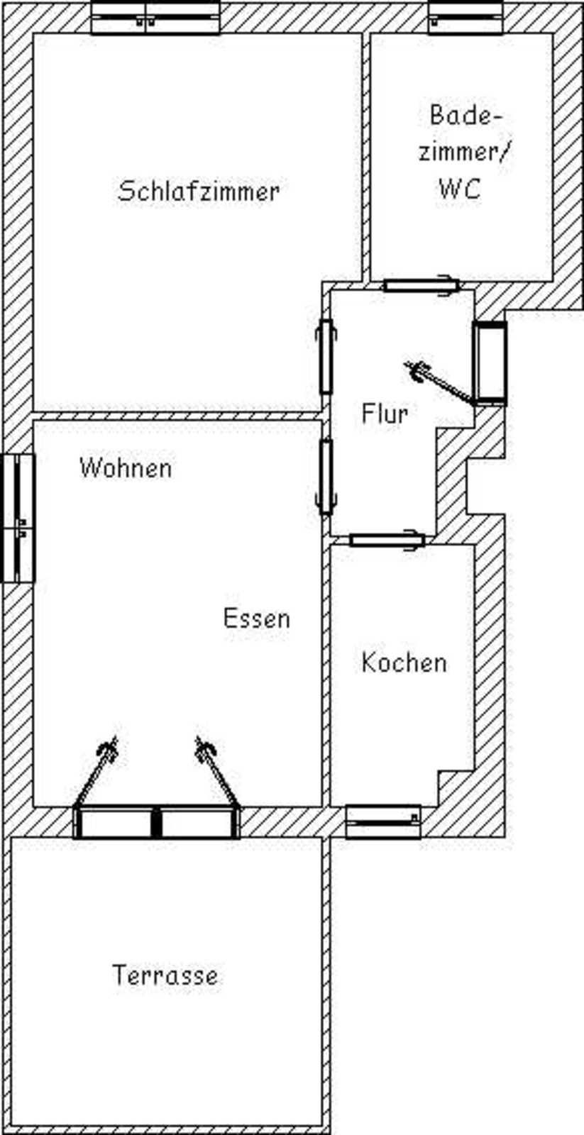 Wohnzimmer mit Schlafmöglichkeit, Küche, Schlafzimmer, Badezimmer mit Dusche, Waschtisch und WC, Erdgeschoss, Terrasse, optimal für 2 bis 4 Personen und zusätzlich ein Kleinkind.