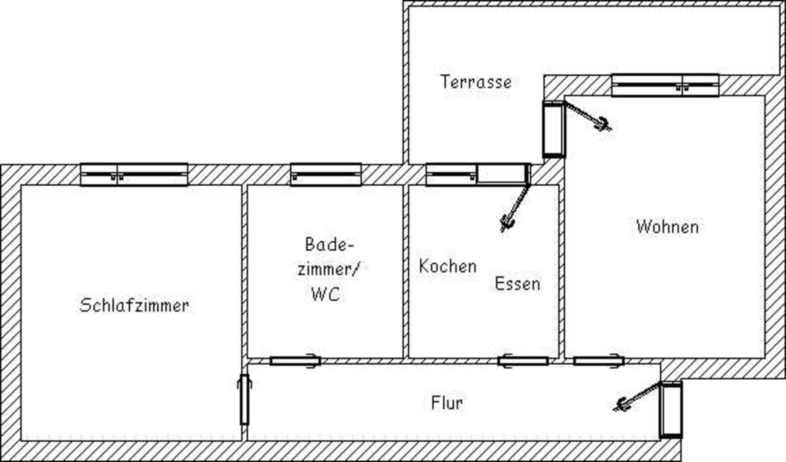 Wohnzimmer mit Schlafmöglichkeit, Küche, Schlafzimmer, Badezimmer mit Dusche, Waschtisch und WC, Erdgeschoss, Terrasse, optimal für 2 bis 4 Personen und zusätzlich ein Kleinkind.