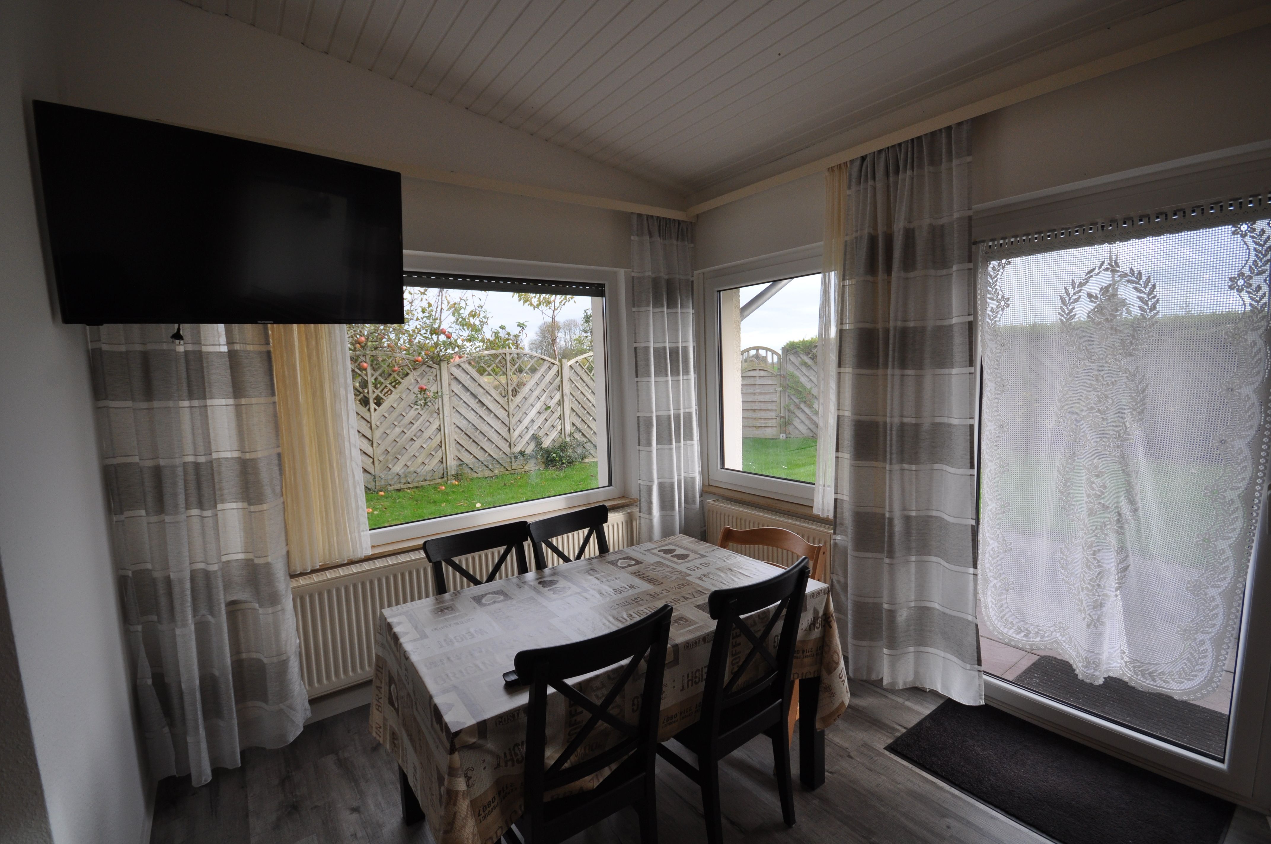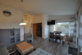 Das ca. 80m² große Ferienhaus wurde im Jahr 2022 umfangreich modernisiert und verfügt über einen großzügigen Wohn- und Essbereich mit Kamin. Von hier aus haben Sie Zugang zur Terrasse und zum Garten. Des weiteren finden Sie neben einer separaten Küche, ein Schlafzimmer mit einem Doppelbett, ein Schlafzimmer mit einem 1,40er-Bett sowie ein Schlafzimmer mit einem Einzelbett. Die Böden sind mit Laminat und Fliesen, die Fenster mit Rolläden ausgestattet. WLAN steht Ihnen kostenlos zur Verfügung.
