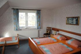Das, mit allergikerfreundlichem Laminat ausgestattet, Ein-Zimmer-Appartement ist gemütlich eingerichtet und bietet Platz für maximal drei Personen und ist ca. 35m² groß. Das Zimmer ist mit einem Doppelbett (2 x 0,90m x 2,00m) und einem Einzelbett (0,90m x 2,00m) ausgestattet. Es hat eine eigene Küche und ein eigenes Badezimmer mit Dusche und WC. Die Küchenzeile ist komplett mit Besteck und Geschirr bestückt und ist zusätzlich noch mit Kaffeemaschine und Wasserkocher ausgestattet. Es besteht Zentralheizung, Heizkörper sind in jedem Raum zu finden.