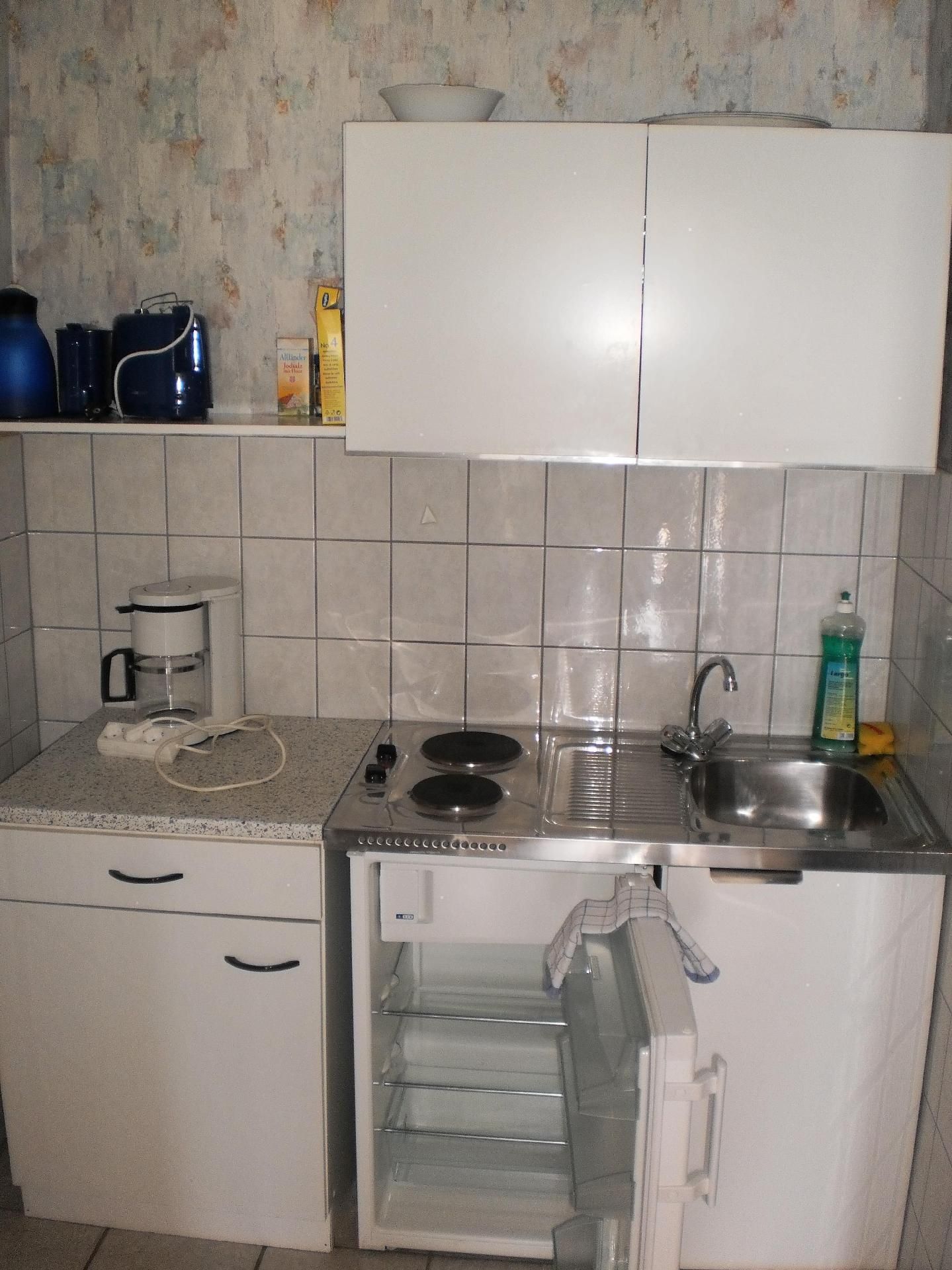Kochen: 2-Plattenherd; Gefrierfach; Kaffeemaschine; Kühlschrank; Wasserkocher;