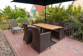 Im Außenbereich wird Ihr Urlaub durch eine einladende Terrasse mit Gartenmöbeln und Grillmöglichkeit abgerundet – ideal für entspannte Stunden im Freien oder gesellige Abende. Der Garten zur alleinigen Nutzung lädt zum Verweilen in ruhiger Atmosphäre ein. Hier können Sie in vollen Zügen die frische Luft genießen und Ihre vierbeinigen Freunde können sicher spielen.