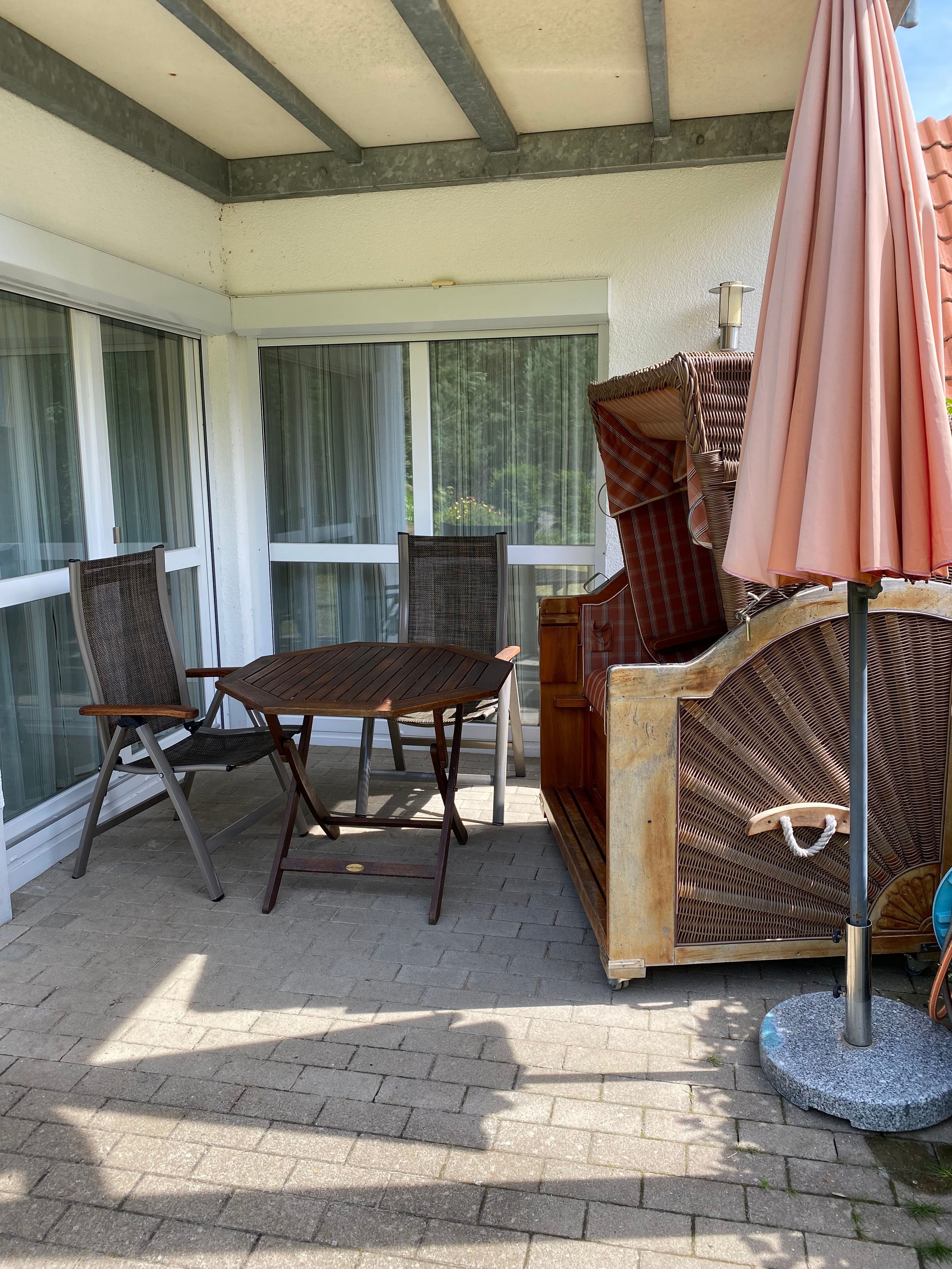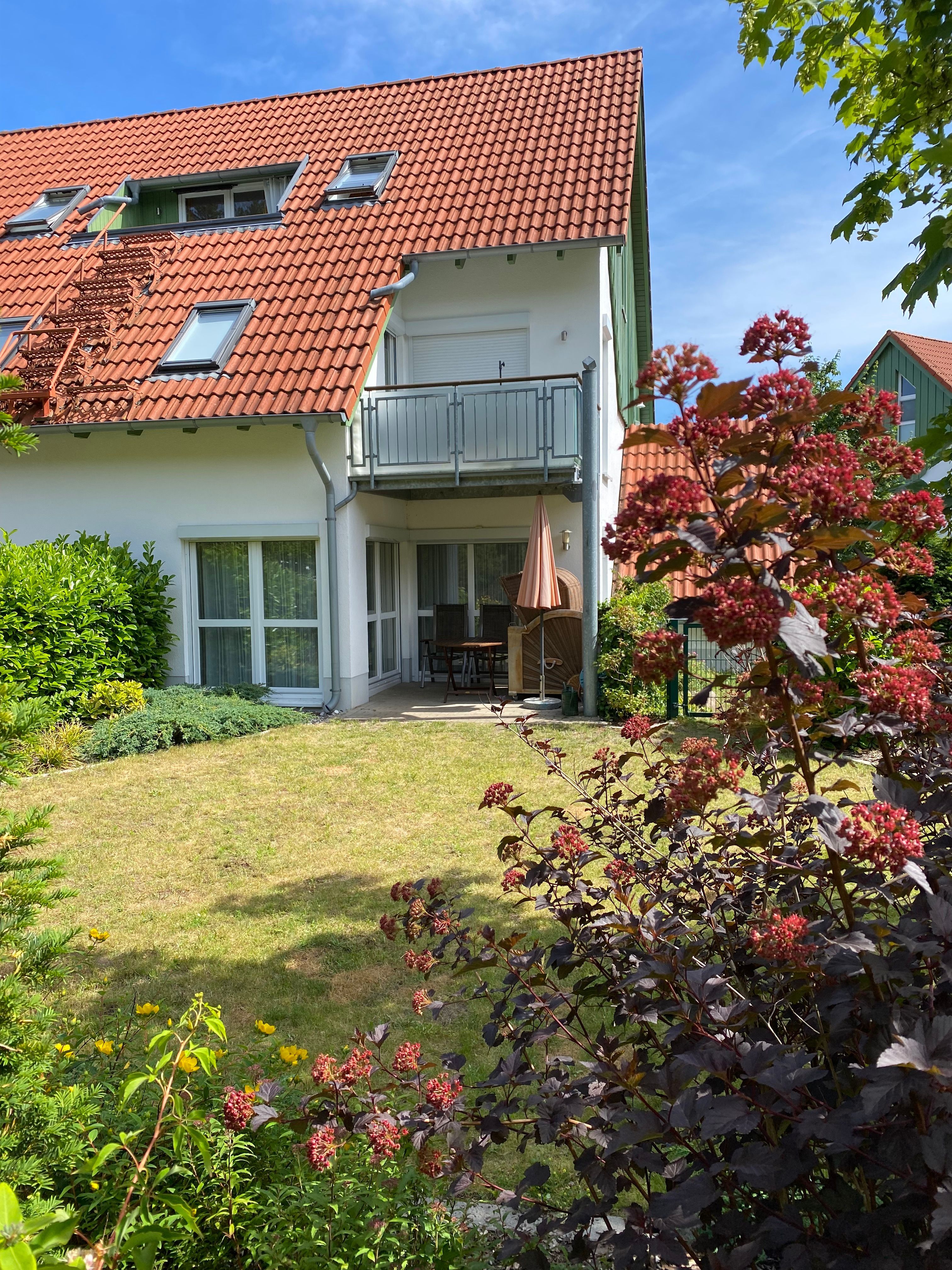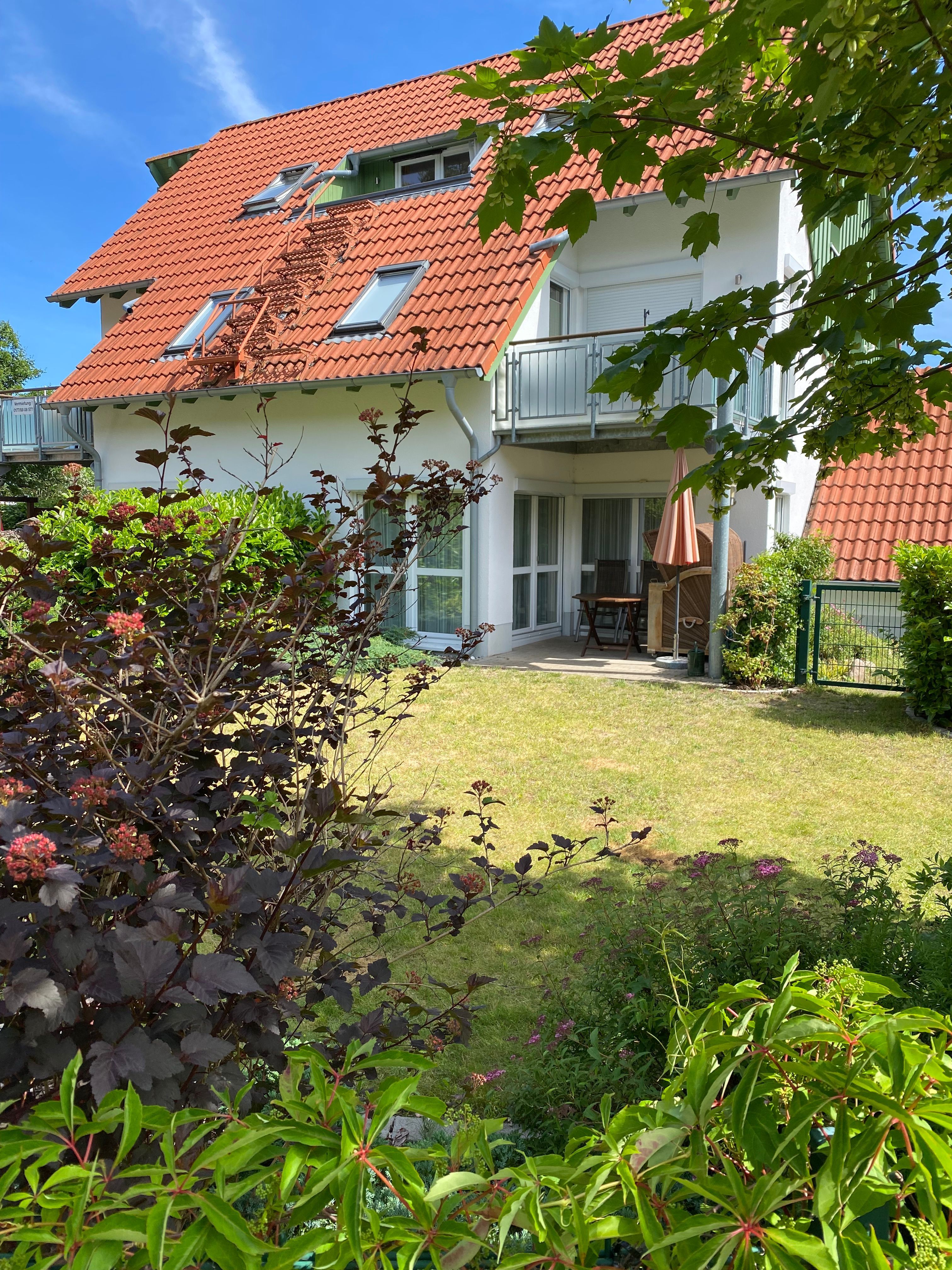 ca. 140m bis zum Strand, eingezäunter Garten mit Südterrasse und Strandkorb, Waldblick