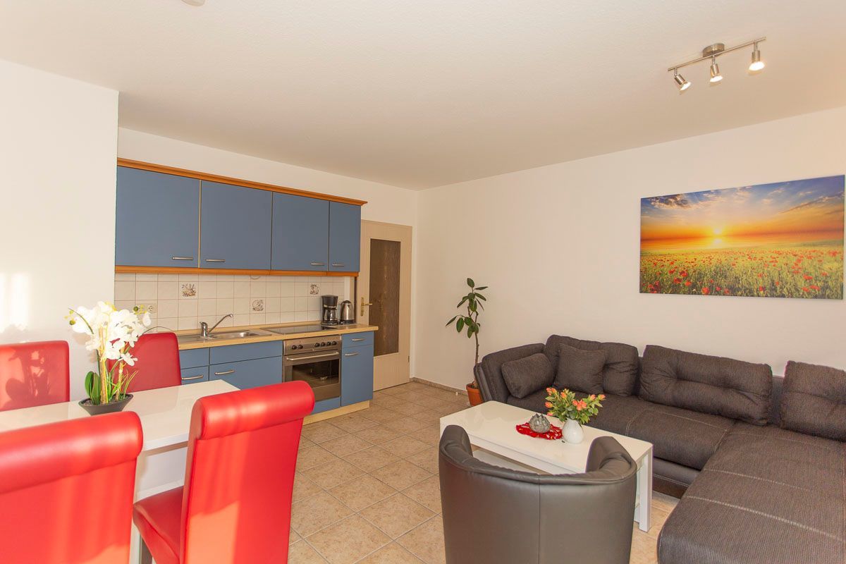Das Haus Dornröschen wurde 1999 gebaut. In diesem Haus bieten wir Ihnen sechs moderne Zweiraumwohnungen mit Wohnzimmer (Küchenzeile), Schlafzimmer, Bad mit Dusche/ WC und Flur an. In jeder Wohnung ist eine Aufbettung möglich. Vor Wohnung 1 und 2 befindet sich eine Terrasse und Wohnung 5 hat einen Balkon. Jede Wohnung verfügt über W-LAN und einen eigenen Parkplatz. Das Haus ist ruhig gelegen, von einigen Wohnungen haben Sie eine schöne Sicht auf das Meer.