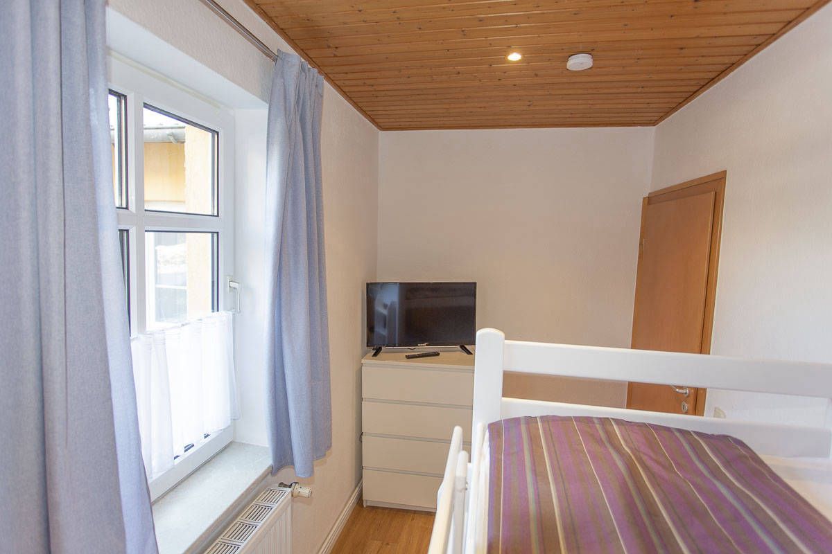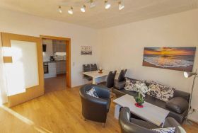 In unserem Haus Dornröschen 2 befindet sich eine 70 Quadratmeter große 3-Zimmer-Ferienwohnung. Sie liegt in der unteren Etage des Hauses und ist über ein paar Stufen vom Parkplatz zu erreichen. Die Ferienwohnung verfügt über einen eigenen Eingang, einen großen Südbalkon, ein großes Wohnzimmer mit Essecke, eine separate Einbauküche mit modernen Geräten und einem Geschirrspüler, ein großes Schlafzimmer und ein separates kleines Kinderzimmer mit Etagenbett, ein Bad mit Badewanne und Duschmöglickeit, sowie einem WC.