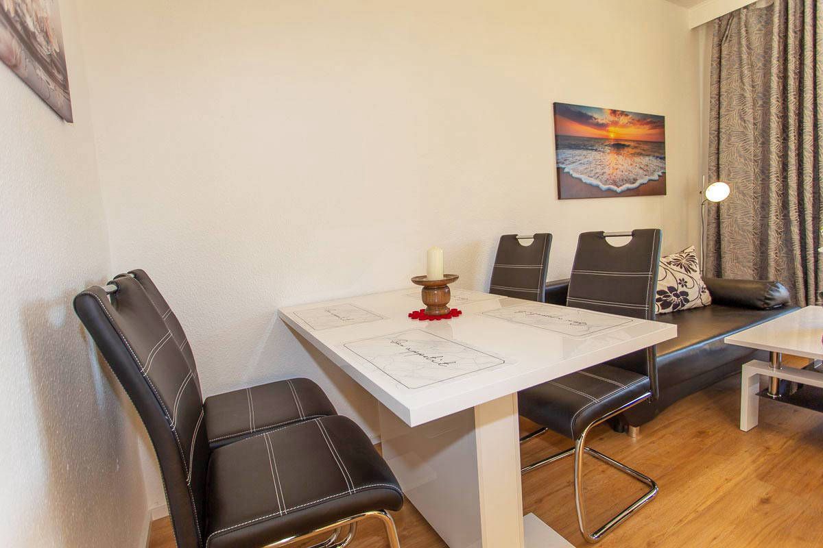 Das Haus Dornröschen wurde 1999 gebaut. In diesem Haus bieten wir Ihnen sechs moderne Zweiraumwohnungen mit Wohnzimmer (Küchenzeile), Schlafzimmer, Bad mit Dusche/ WC und Flur an. In jeder Wohnung ist eine Aufbettung möglich. Vor Wohnung 1 und 2 befindet sich eine Terrasse und Wohnung 5 hat einen Balkon. Jede Wohnung verfügt über W-LAN und einen eigenen Parkplatz. Das Haus ist ruhig gelegen, von einigen Wohnungen haben Sie eine schöne Sicht auf das Meer.