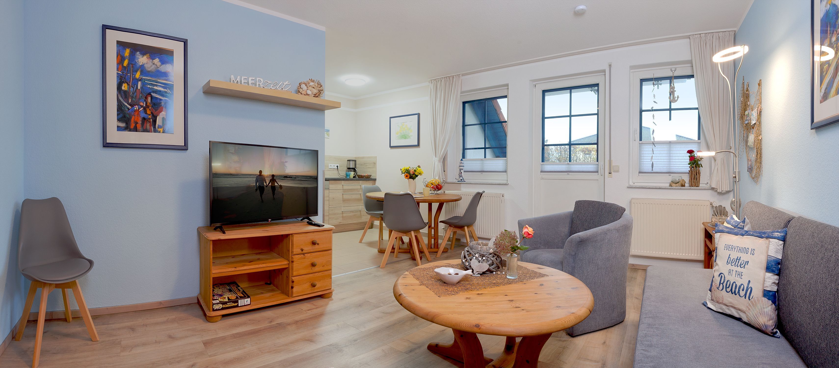 • Wohnzimmer mit SAT-TV, Radio, vollwertig ausziehbare Schlafcouch