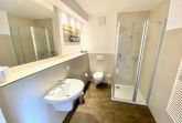• Badezimmer mit Dusche, beheiztem Handtuchhalter und teilweise Tageslicht