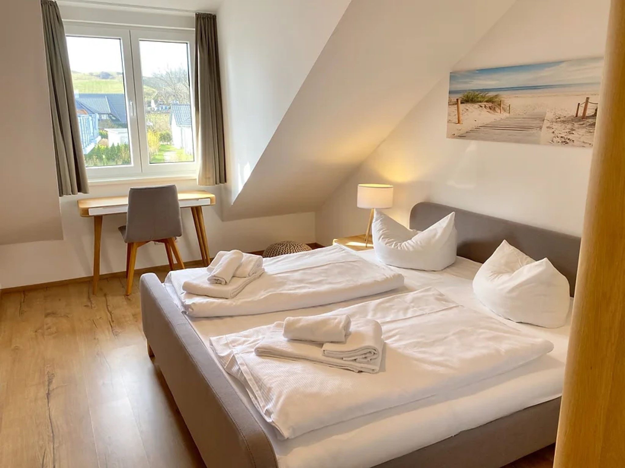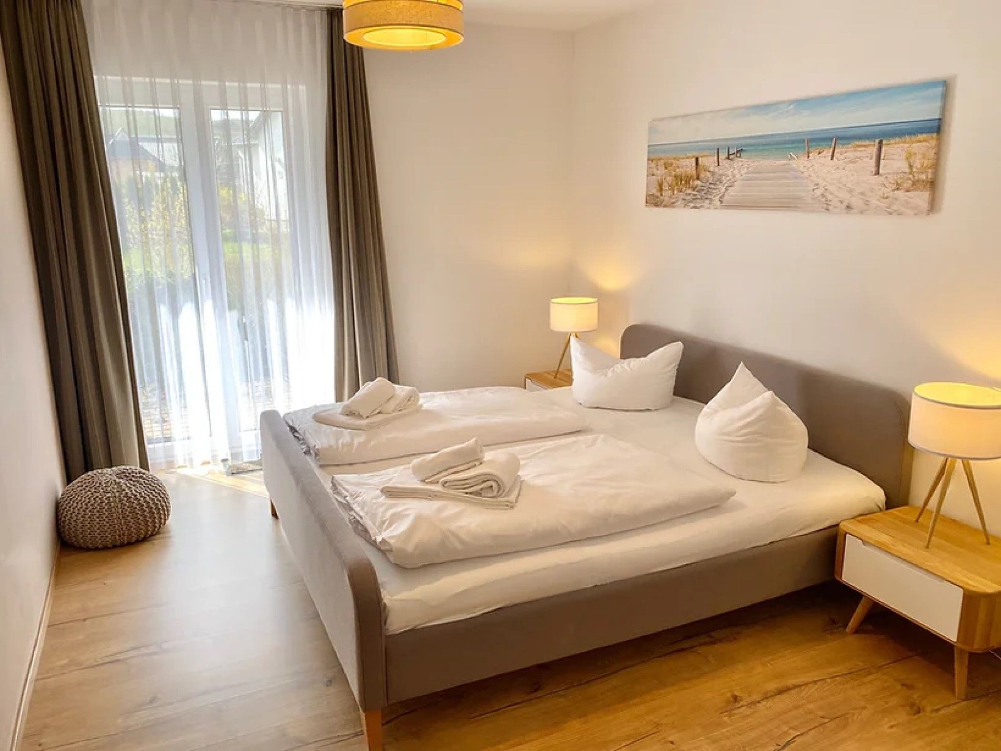 • 1 Schlafzimmer mit einem 1,80 m breiten Doppelbett und 1 Schlafzimmer mit einem 1,60 m breiten Doppelbett