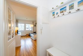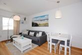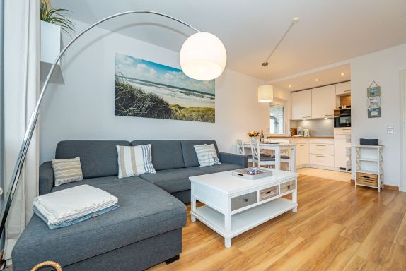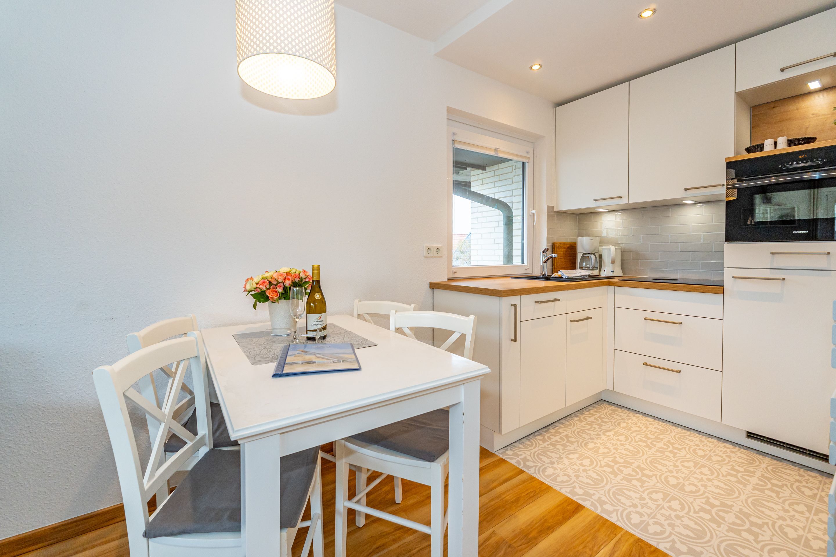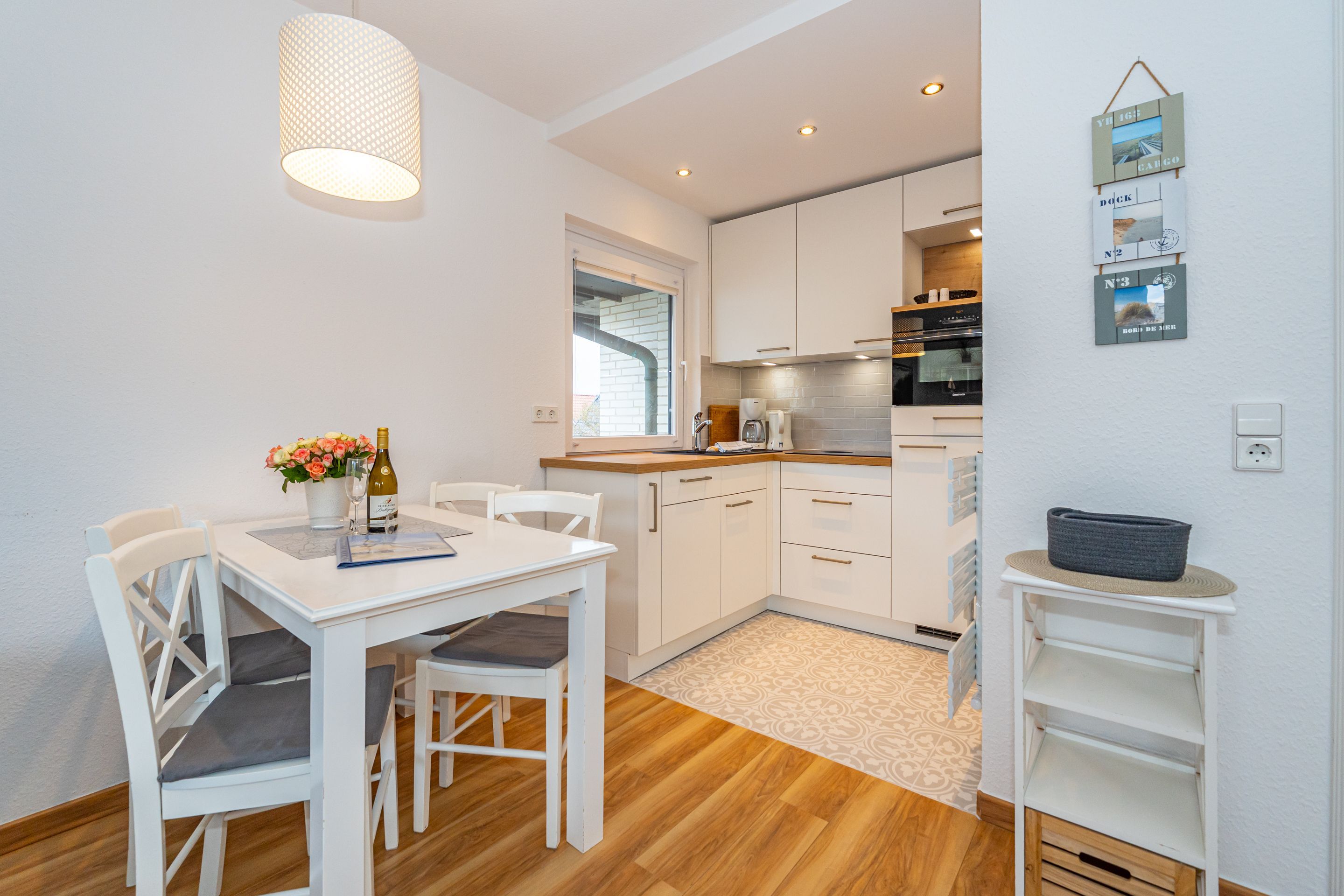 Diese moderne Nichtraucher-Ferienwohnung in der 2. Etage bietet auf ca. 40 m² alles, was Sie für einen entspannten Aufenthalt benötigen. Der hochwertige Designerboden in Holzoptik und die geschmackvolle Einrichtung schaffen eine gemütliche Atmosphäre ideal für bis zu zwei Personen.