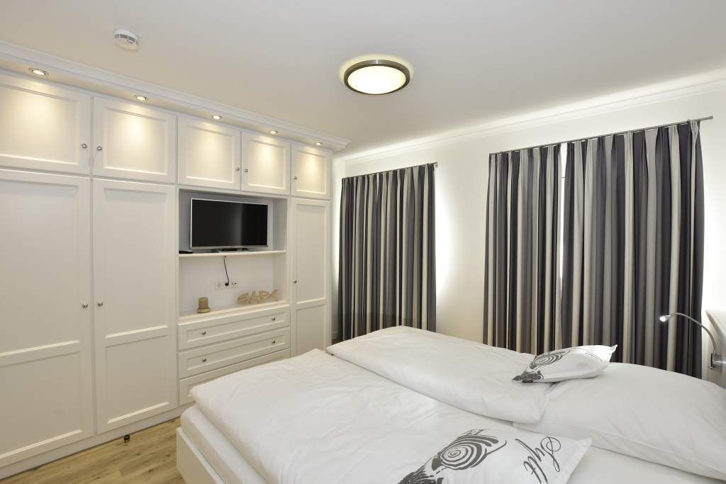 Das neue Schlafzimmer hat ein komfortables Doppelbett mit Einzelmatratzen jeweils in Komfort-Liegehöhe, Kleiderschrank und einen 2.-ten TV.