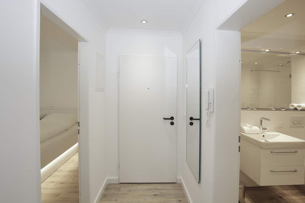 Vom Vorflur gelangt man in das Wohnzimmer (mit Austritt zum Balkon), in das Schlafzimmer und in das neue Duschbad/WC.