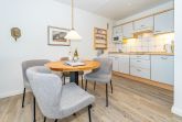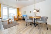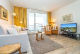 2-Zimmer-Nichtraucher-Ferienwohnung, ca. 48 m² in der 2. Etage zur Seeseite mit Westloggia (Nachmittagssonne, mit Balkonmöbeln und Auflagen) für max. 3 Personen.