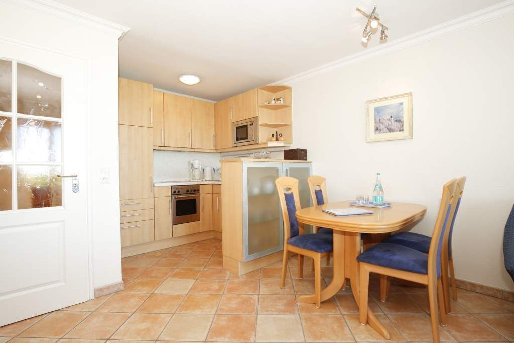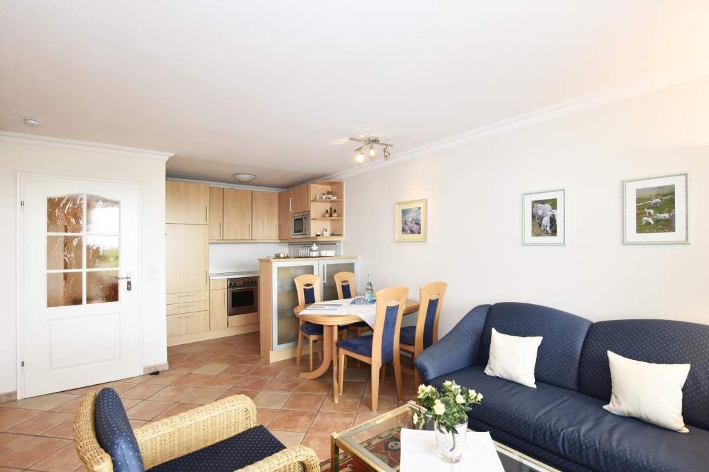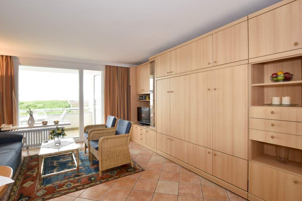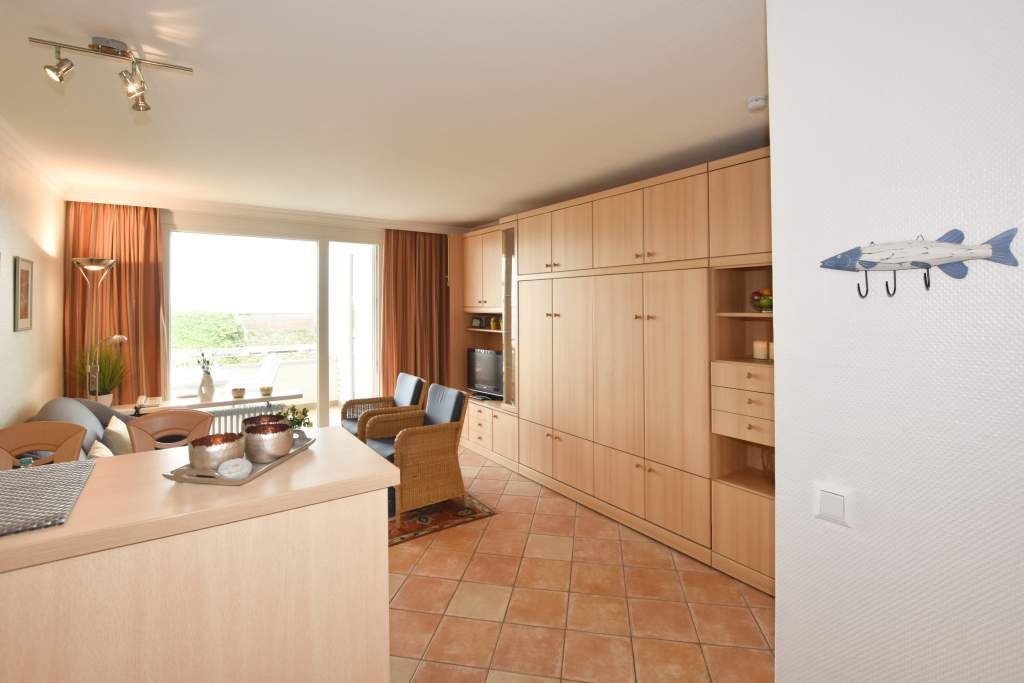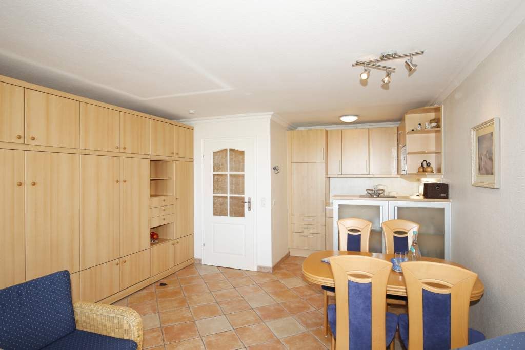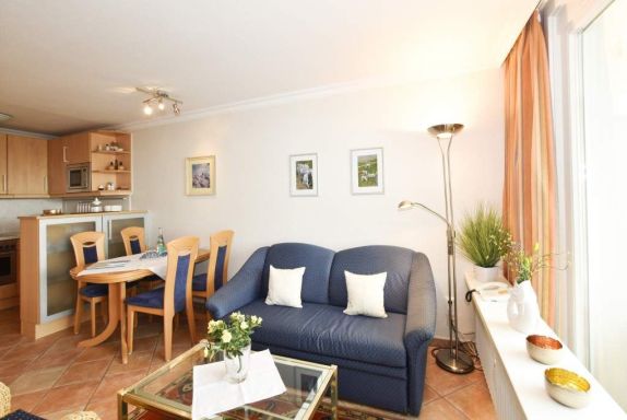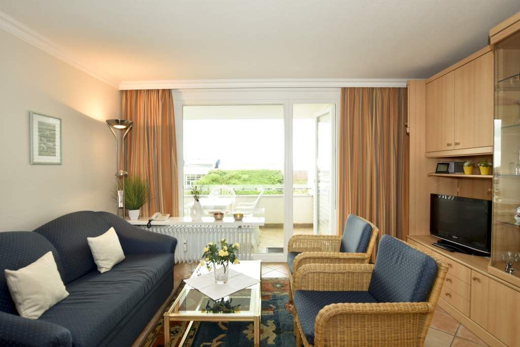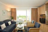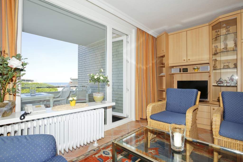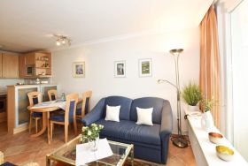 Gemütlich und geschmackvoll eingerichtete 2-Zimmer-Nichtraucher-Ferienwohnung (ca. 54 m²) in der 3. Etage zur Seeseite mit Meerblick und Westloggia (Nachmittagssonne, mit Balkonmöbeln und Auflagen) für max. 4 Personen.