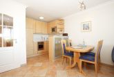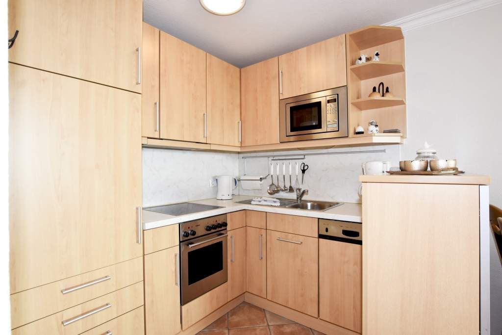 Die Küchenzeile hat einen Geschirrspüler, eine Mikrowelle, ein Herd mit Backofen und 4 Kochfeldern sowie ein Kühlschrank mit 3*-Gefrierfach. Kaffeemaschine, Wasserkocher und Toaster gehören zur Grundausstattung.