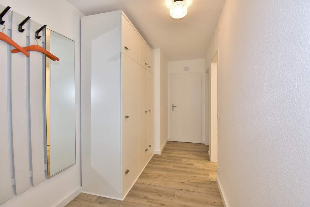 Diese helle 2-Zimmer-Nichtraucher-Ferienwohnung (ca.?48?m²) in der 3. Etage bietet Platz für bis zu 4 Personen und begeistert durch ihre sonnige Ausrichtung zur Südseite. Ideal für alle, die zentral wohnen und ihren Urlaub komfortabel gestalten möchten. Vom Flur mit Garderobe und praktischen Einbauschränken gelangen Sie in das Wohnzimmer mit Zugang zum Südbalkon, die offene Küchenzeile, das Schlafzimmer sowie in das Duschbad/WC.