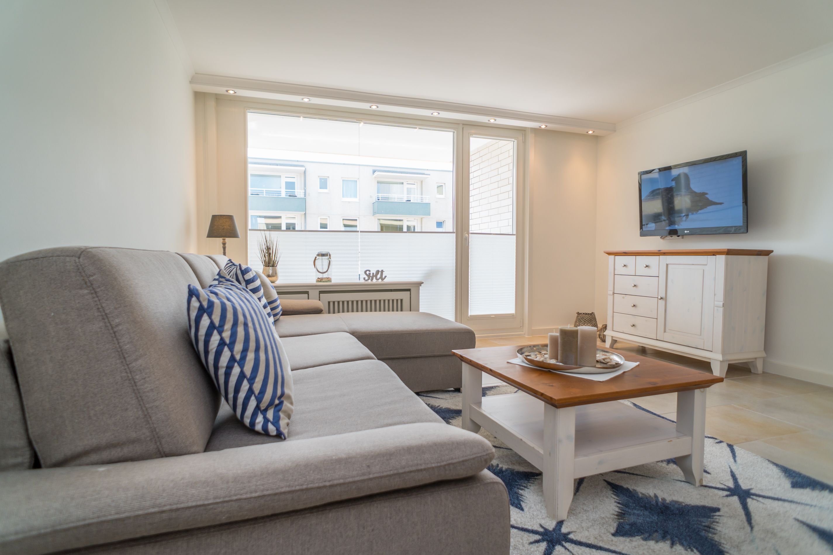 Hell und freundlich eingerichtete 2-Zimmer-Nichtraucher-Ferienwohnung (ca. 56 m²), 2020 renoviert, in der 3. Etage zur Südseite mit Südbalkon (mit Balkonmöbeln und Auflagen) für max. 4 Personen.